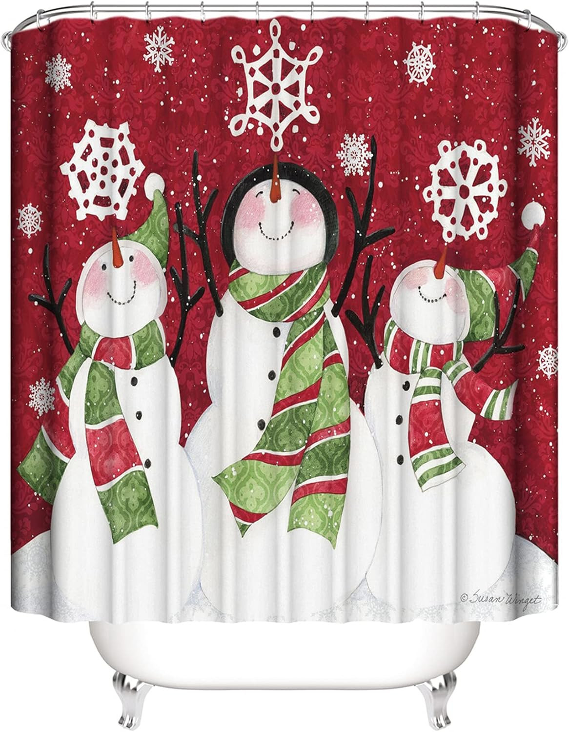 Christmas Shower Curtain Set with Rugs and Bath Mat - 4 Piece Decor Set