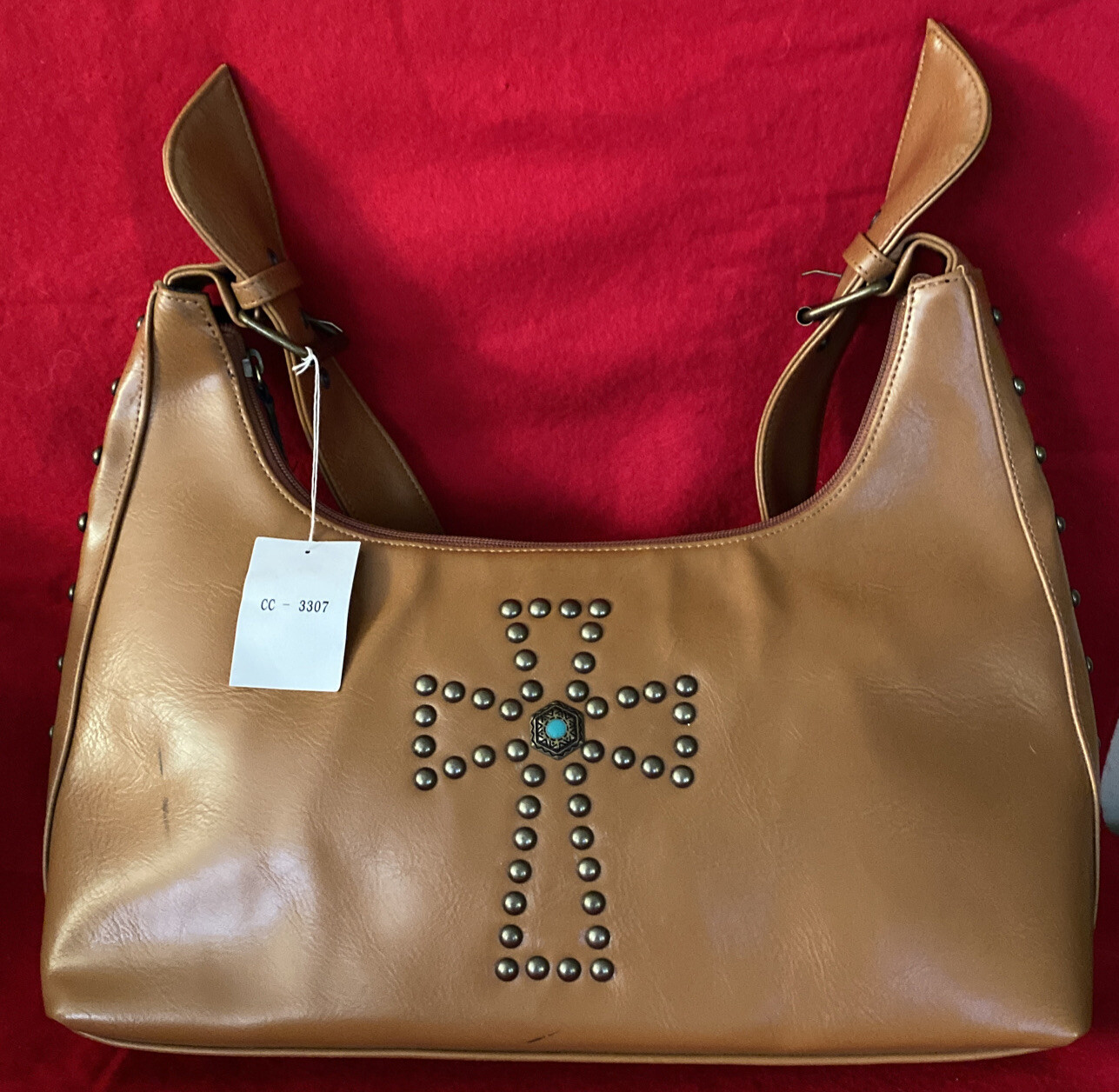 Woman s Bling Cross Studded Brown Western Bag Purse Handbag