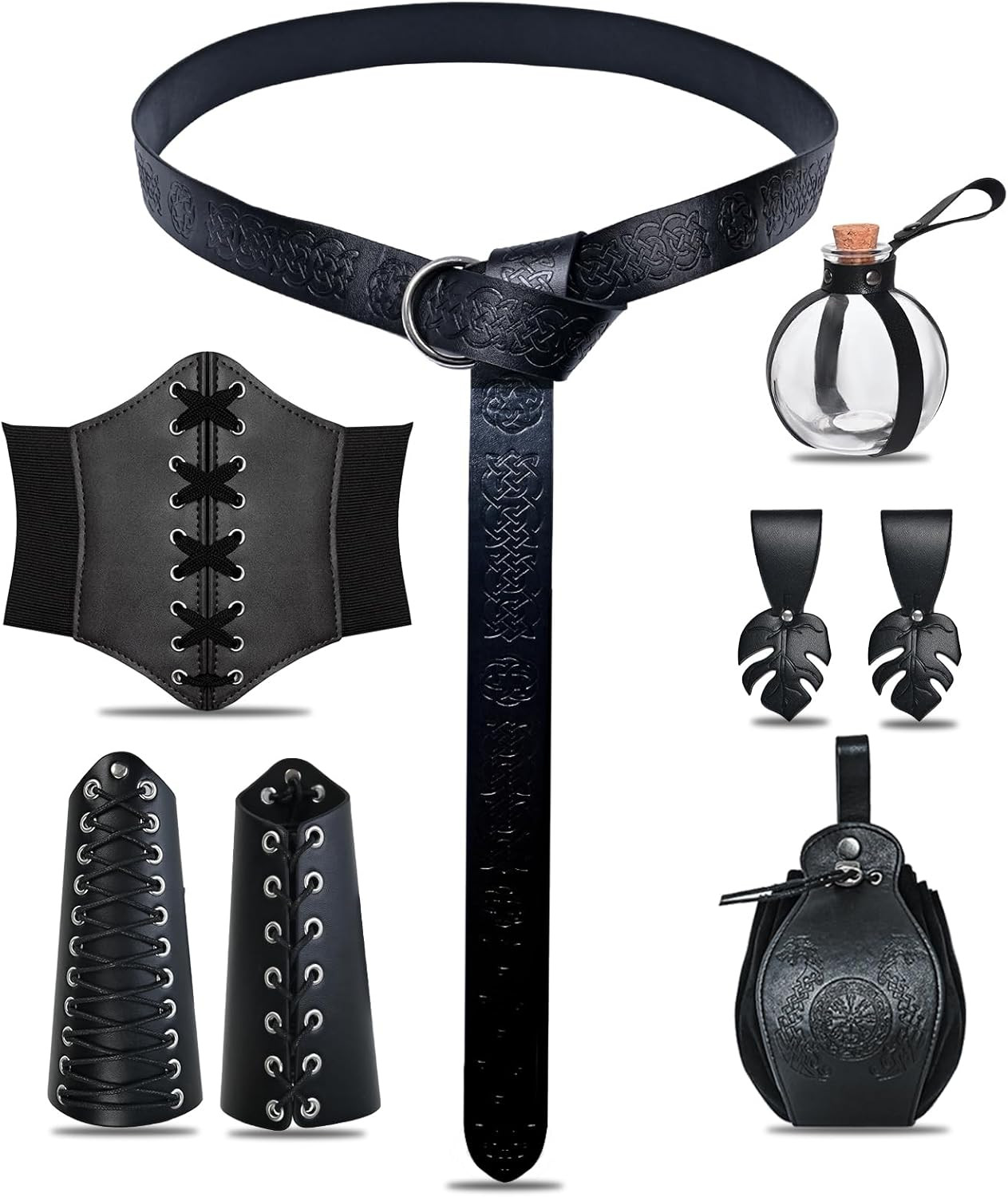 Women Renaissance Accessories Medieval Viking Belt Potion Bottles Faux Leather B