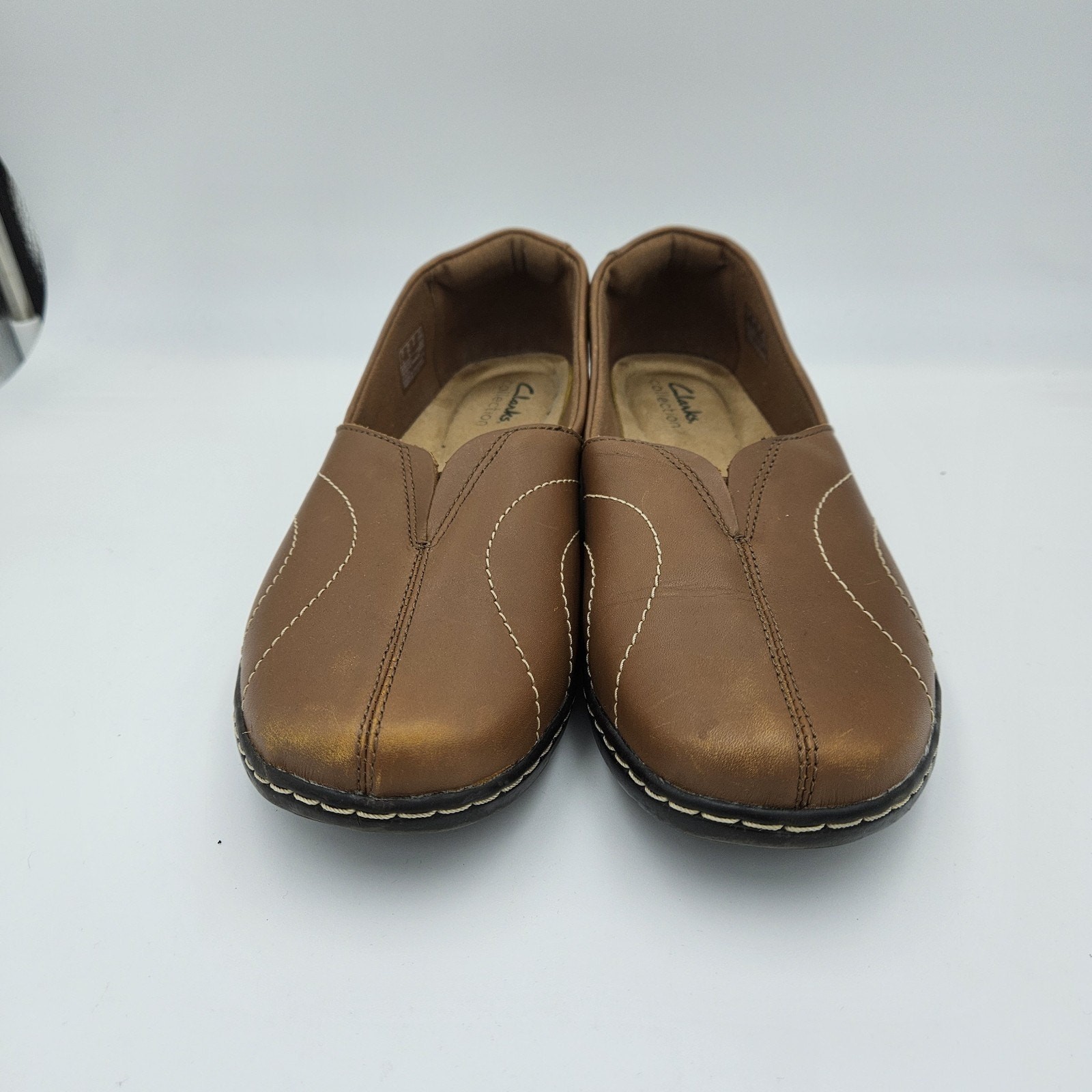 как выглядит Clarks Womens Cora Meadow Slip On Casual Light Brown Leather Loafers Flats 7 E фото