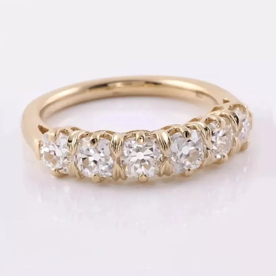 как выглядит 4.27 Ct Round Cut Simulated Diamond Art Deco 6 Stones Ring 14K Rose Gold Plated фото