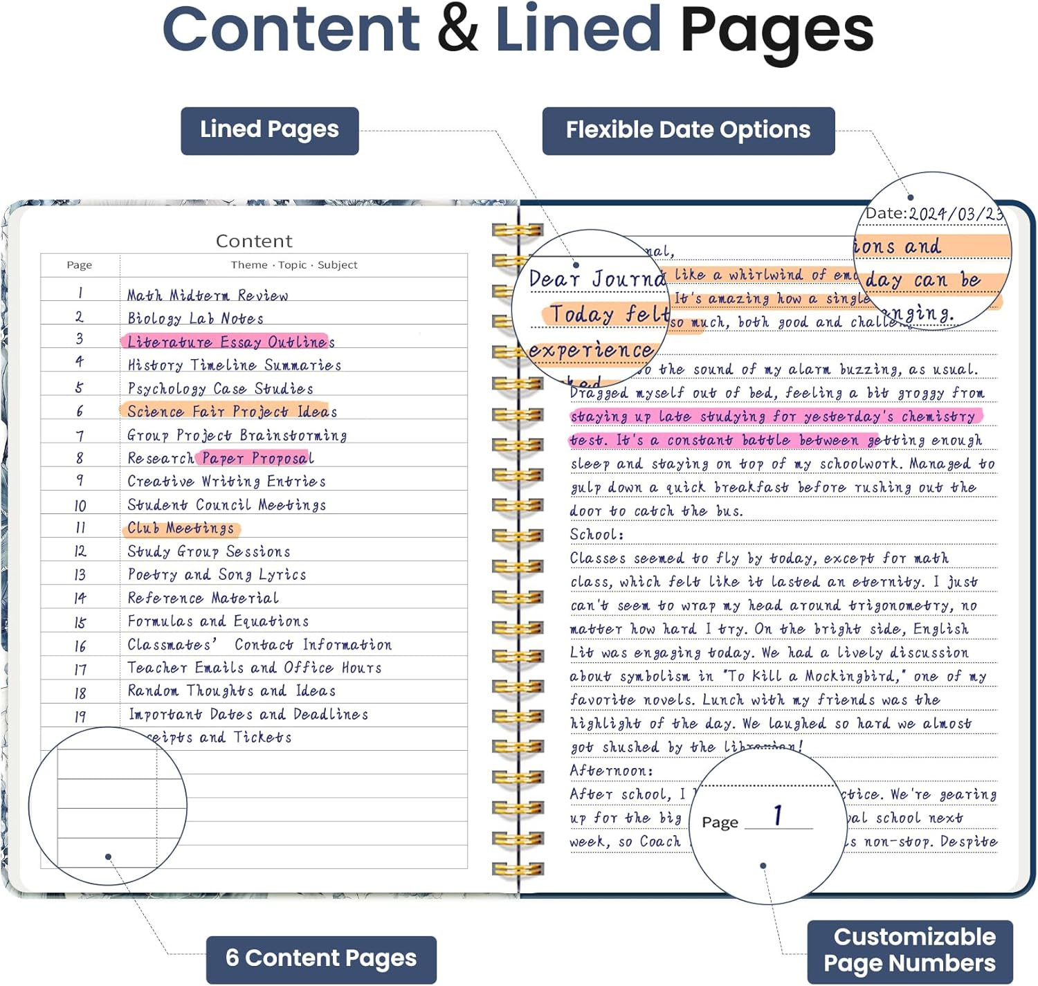 Lined Spiral Journal Notebook for Women, A5 College Ruled Journals for Writing,
