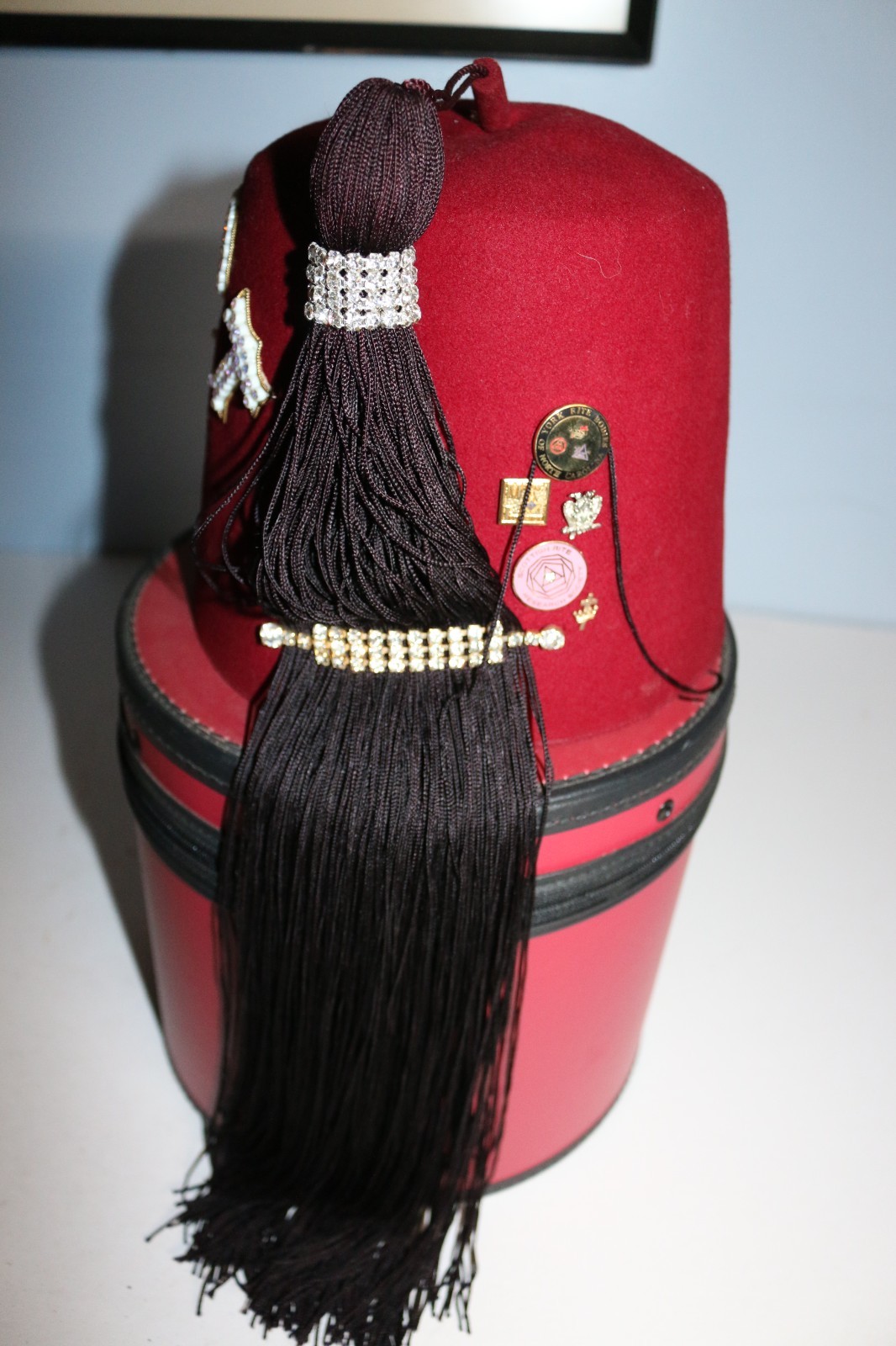 как выглядит Vintage jeweled Freemason Shriner FEZ hat Egypt w/ case VERY ORNATE фото