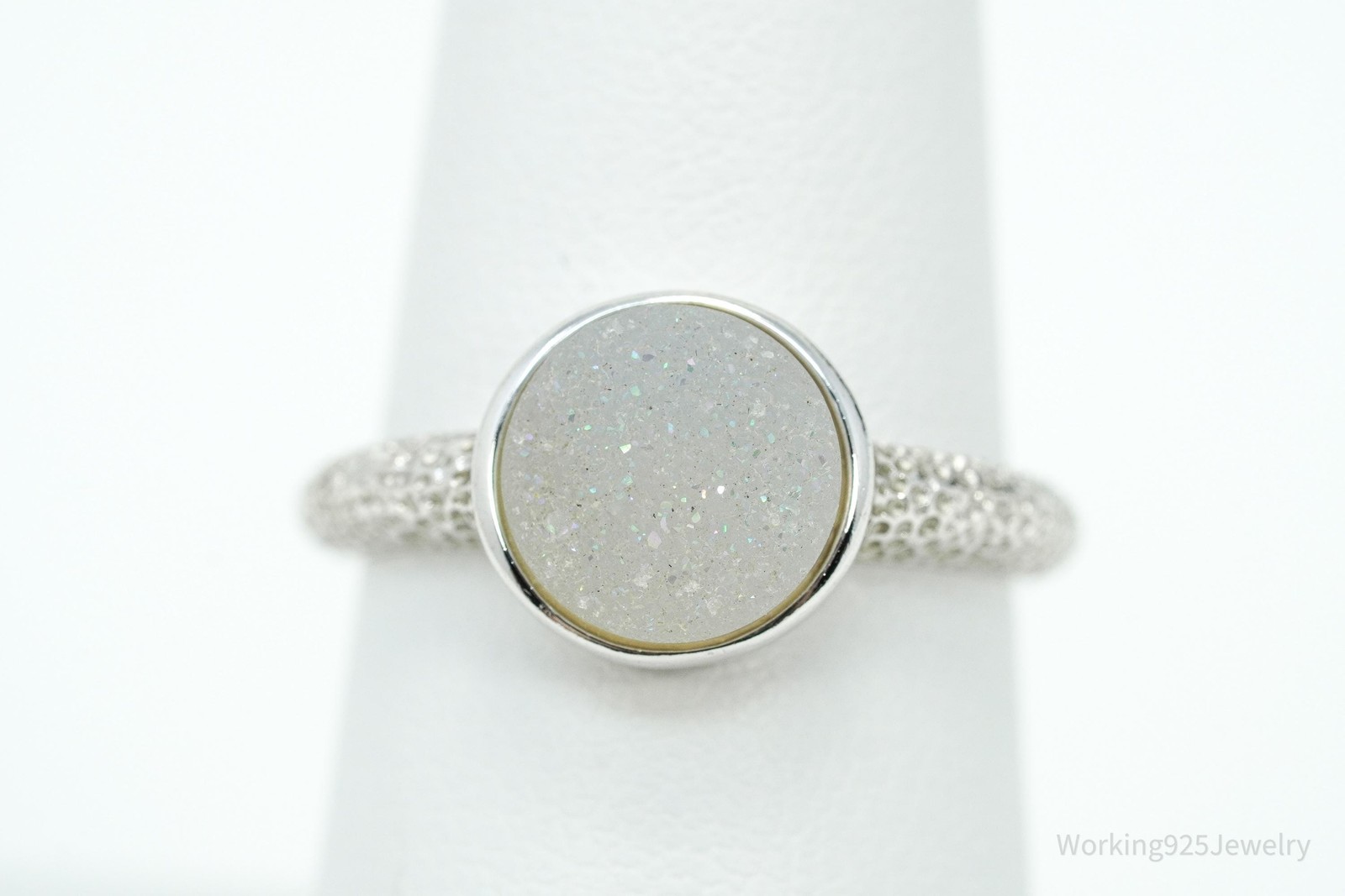 Vintage Druzy Quartz Sterling Silver Ring - Size 7.25
