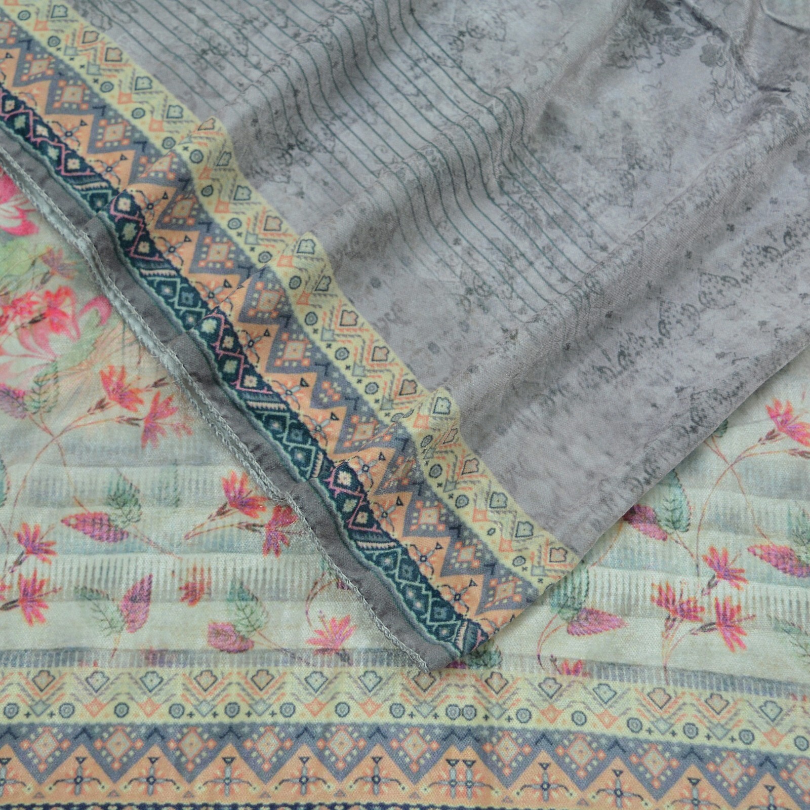 как выглядит Indian Vintage Dupatta Ivory Gray Long Stole velvet Brasso Scarves Veil Hijab фото