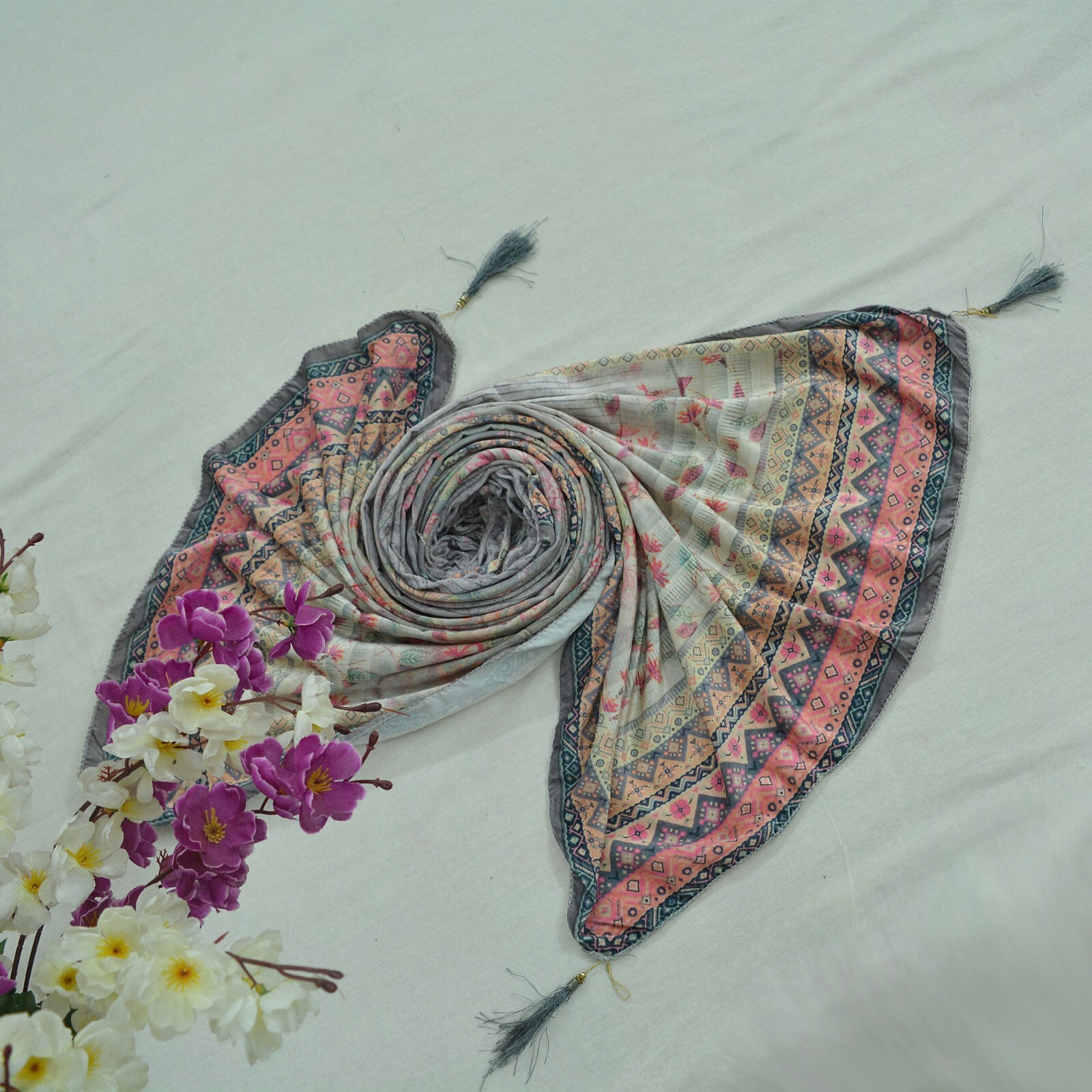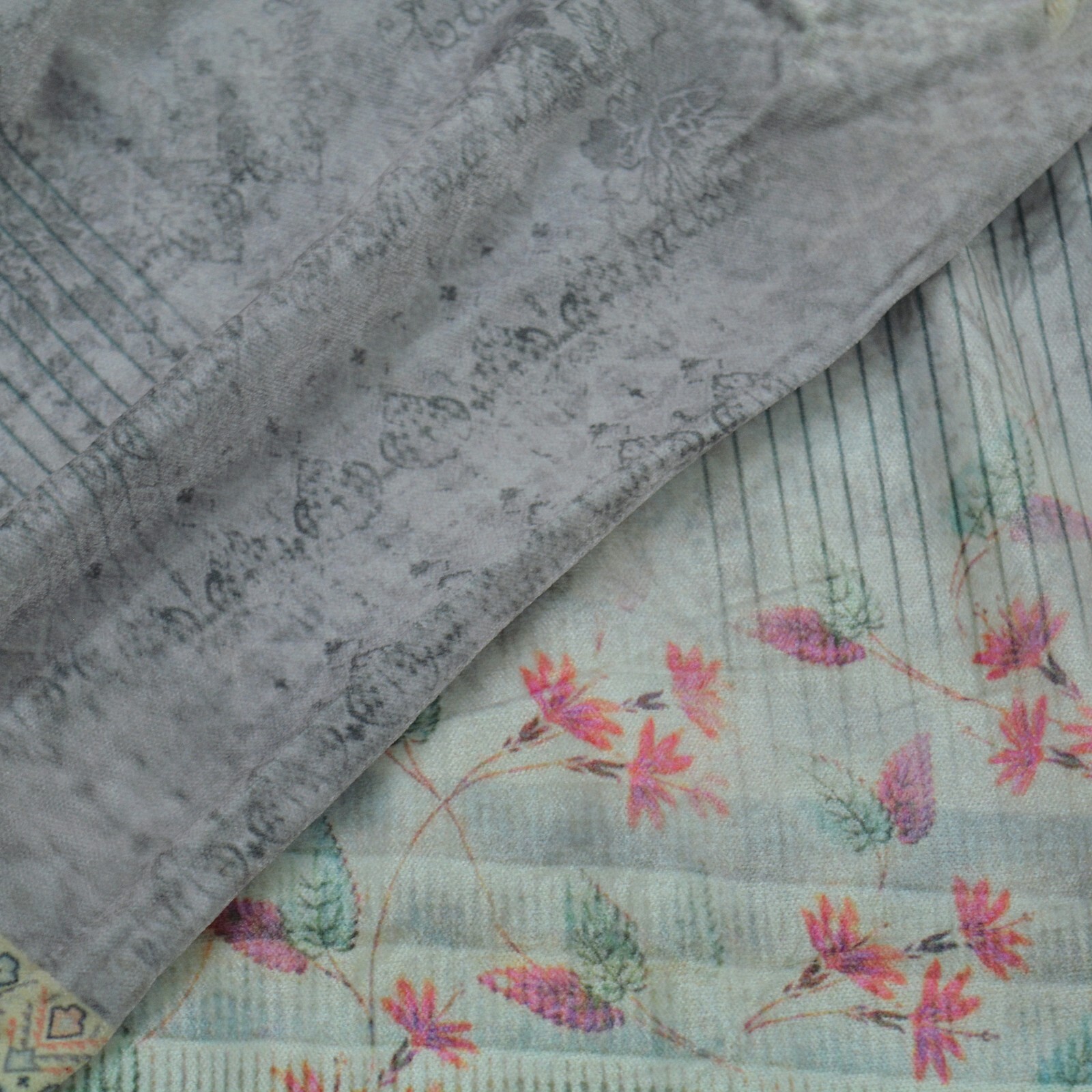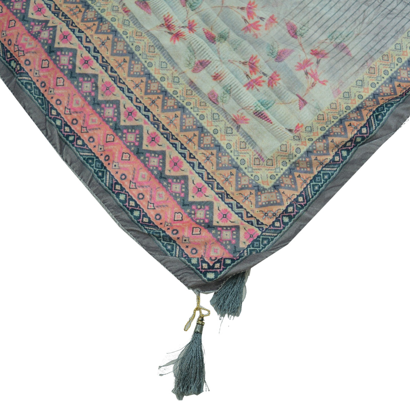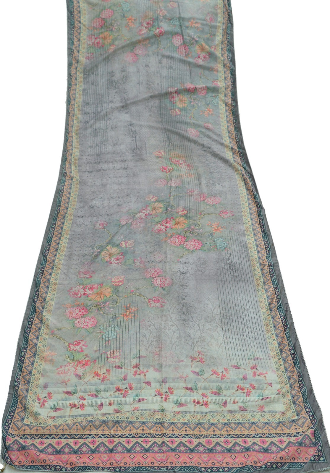 Indian Vintage Dupatta Ivory Gray Long Stole velvet Brasso Scarves Veil Hijab