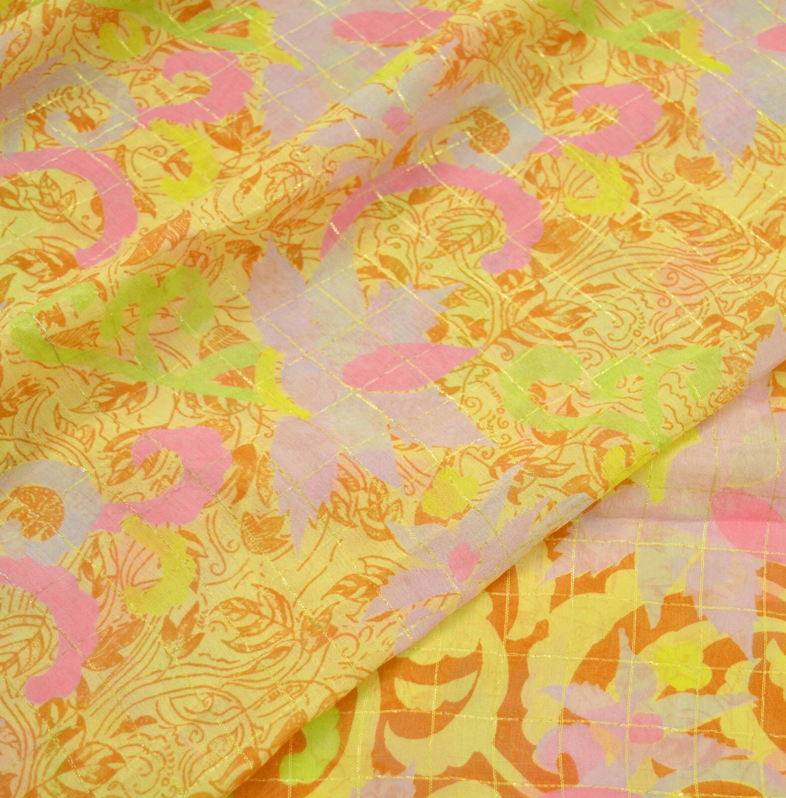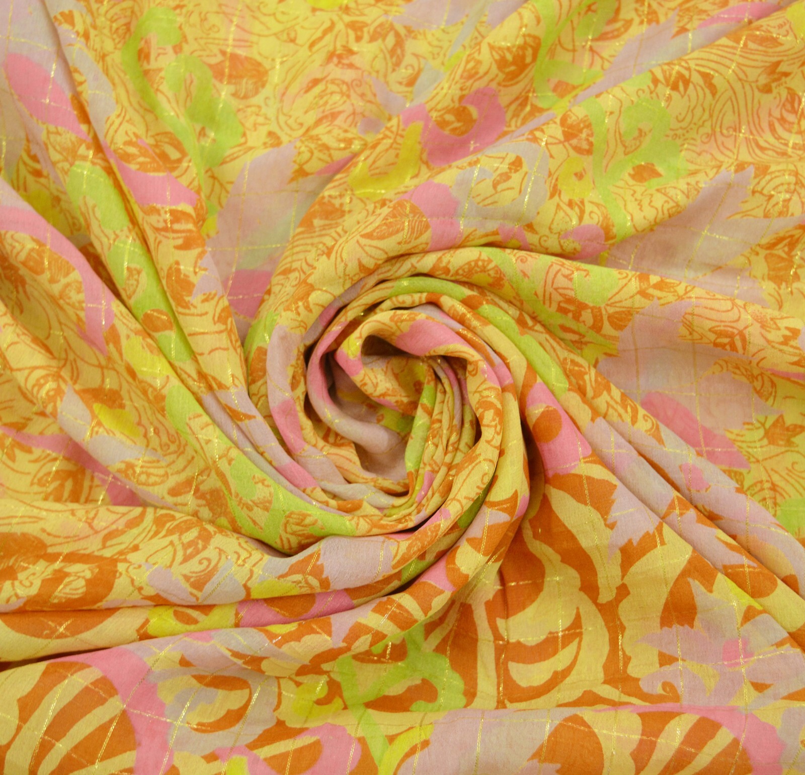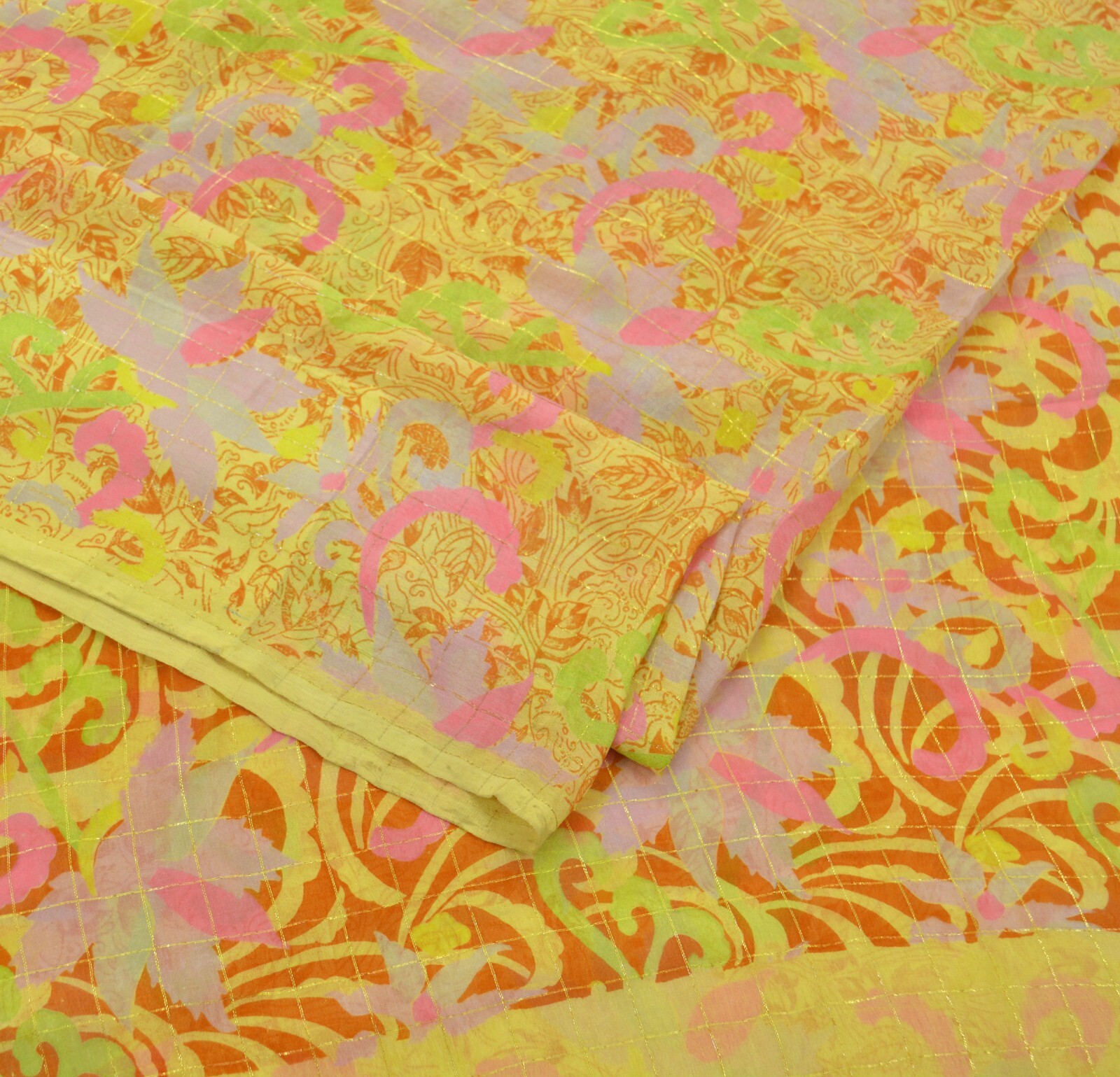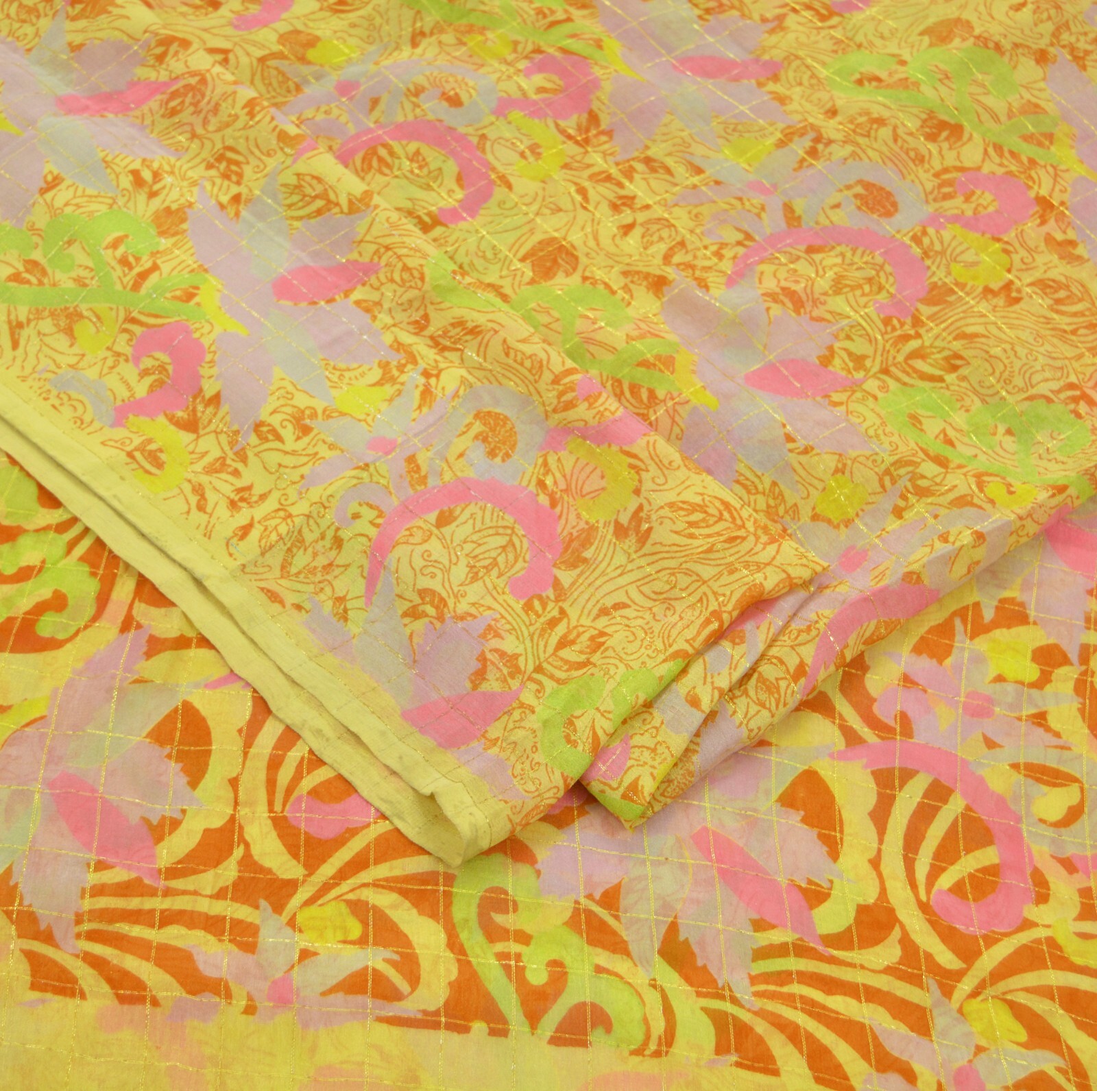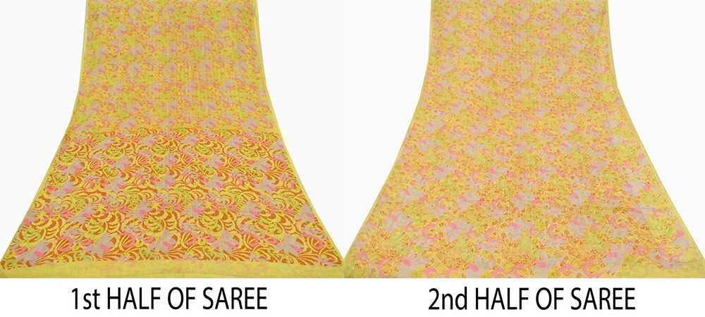 Vintage Sari Yellow Pure Silk Printed Saree 6yd Sewing Craft Fabric Dress Making