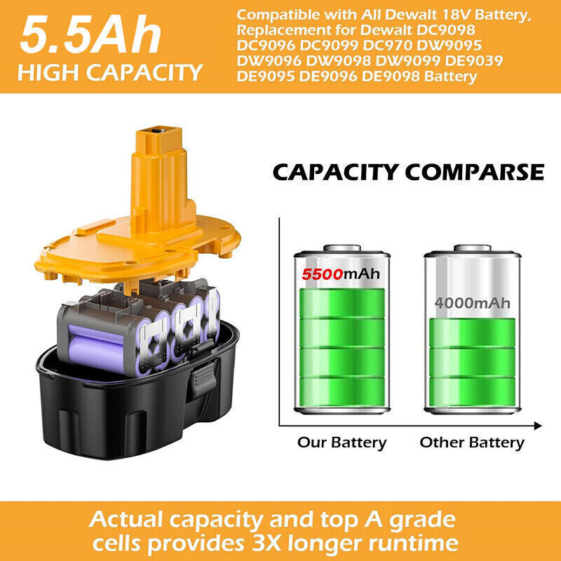2 PACK 18V 4800mAh For Dewalt 18 VOLT XRP DC9096 DC9098 NiMh Battery DC9099 NEW