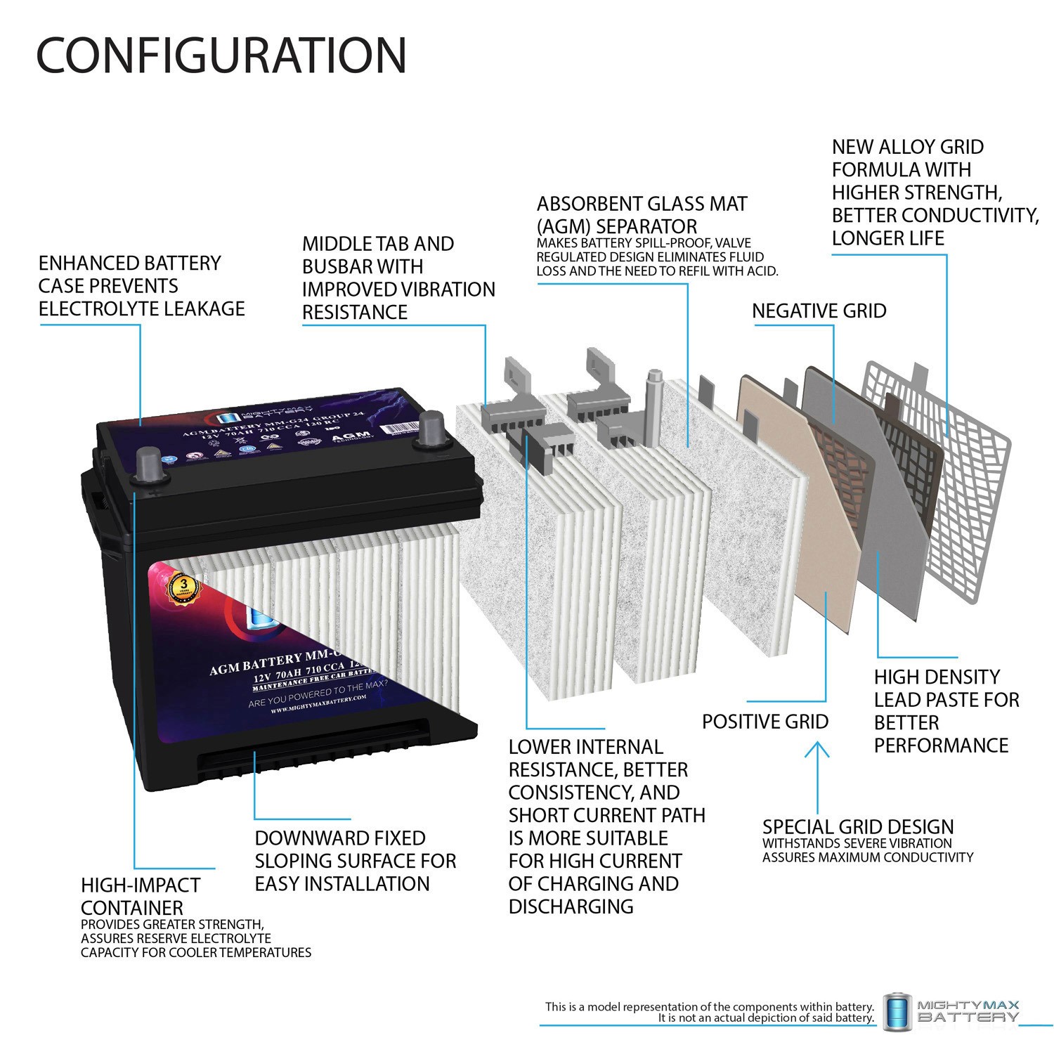 Mighty Max MM-G24 Grp Size 24 12V 70Ah 120RC 710 CCA Replaces Lexus RC350 15-23