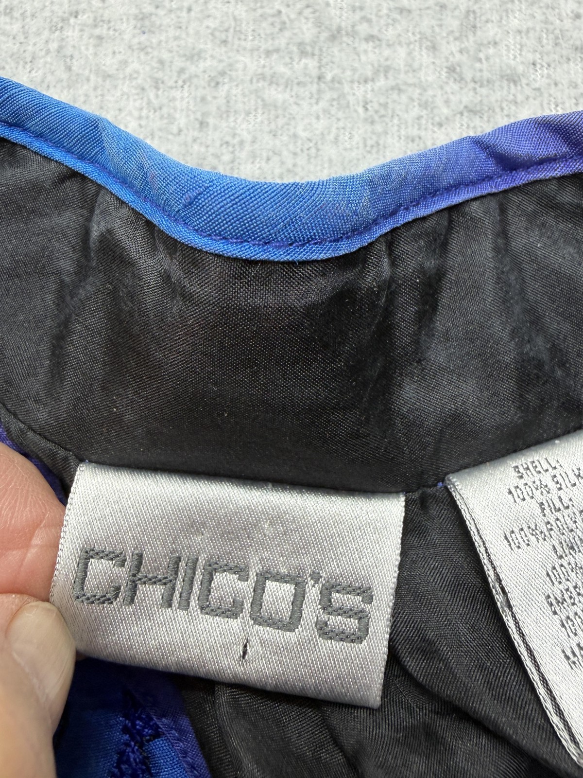 как выглядит Chicos Silk Quilted Embroidered Jacket Womens 1 M Blue Floral Mandarin Collar фото