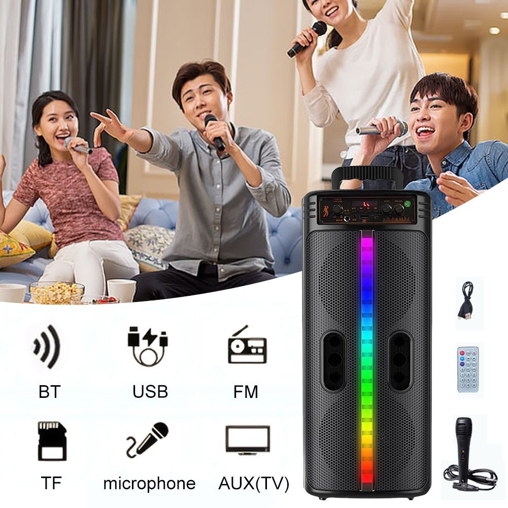 Dual 8 Woofer Portable FM Bluetooth Party Speaker Heavy Bass Sound With Mic LED