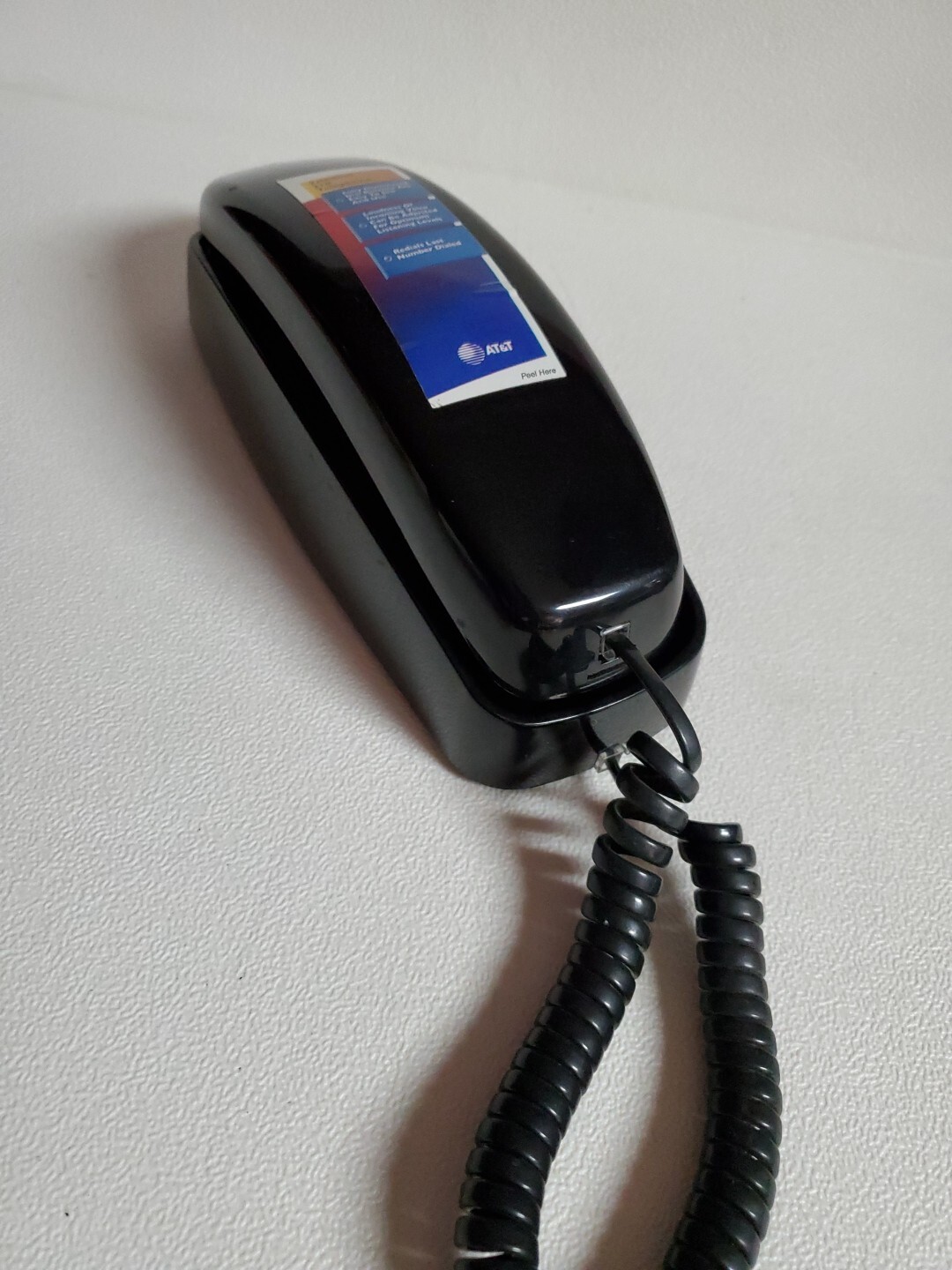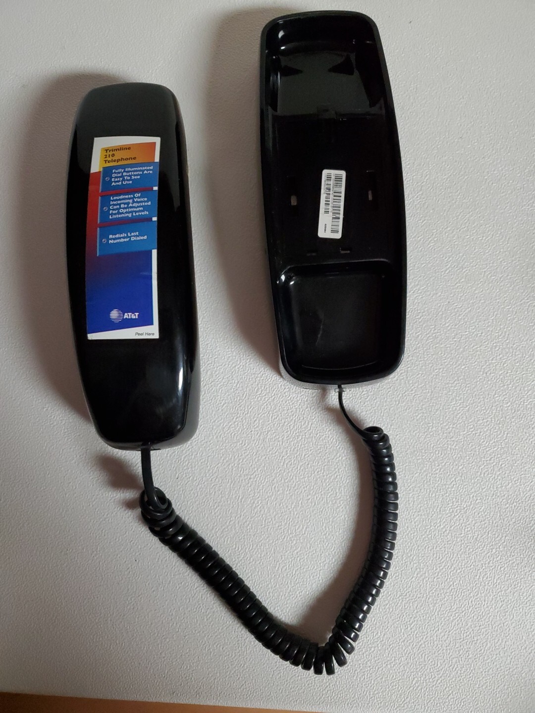 как выглядит AT T Trimline 210 Push Button Wall Telephone Black 80s or 90s Corded used фото