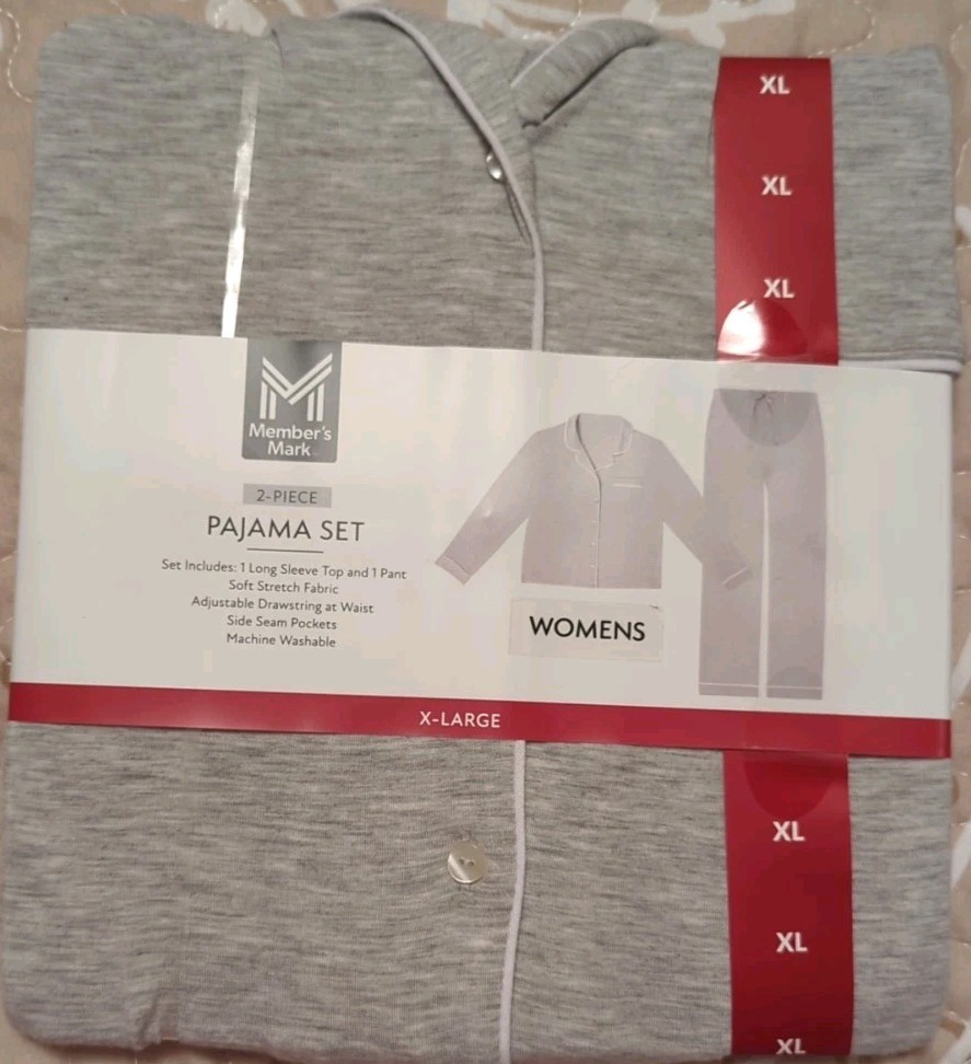 Women's Notch Collar 2 Piece Pajama Set W/Pockets Ladies XL Grey Pajamas NEW