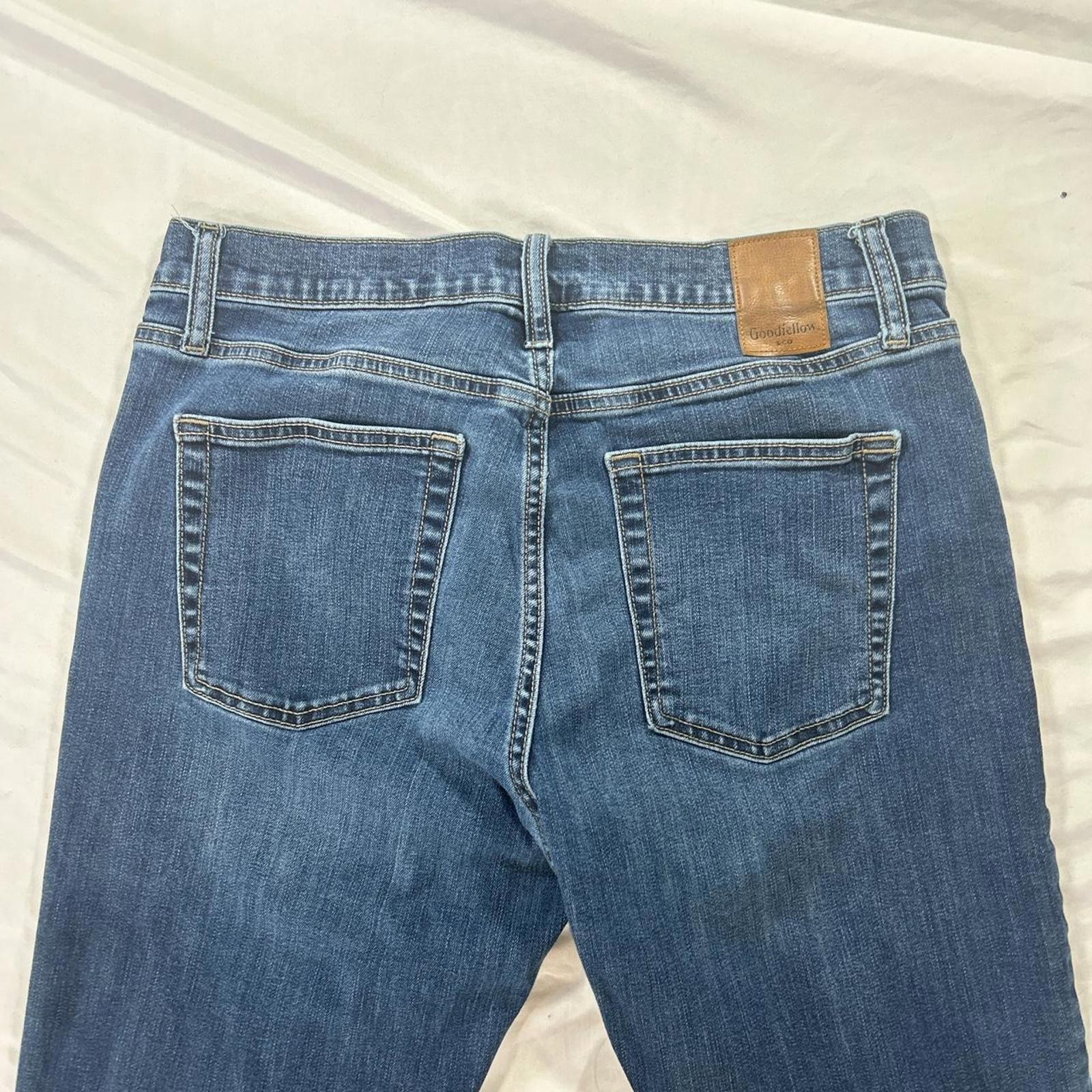 как выглядит Goodfellow Co. Athletic Fit TruTemp 365 Jeans in classic dark indigo wash. фото