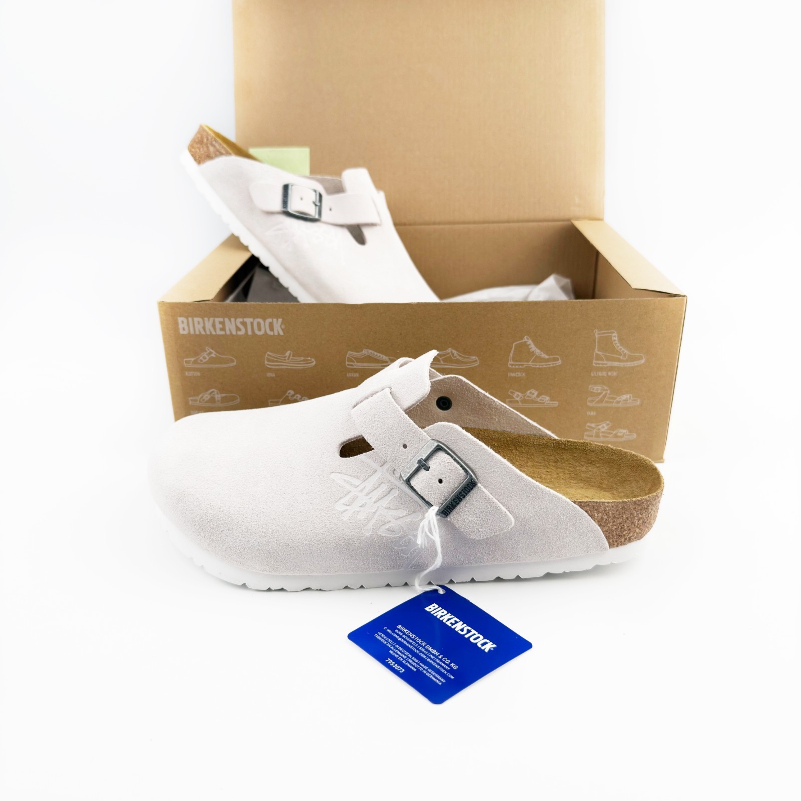Birkenstock Stussy Boston Bone Suede Classic Clogs Women s Shoes