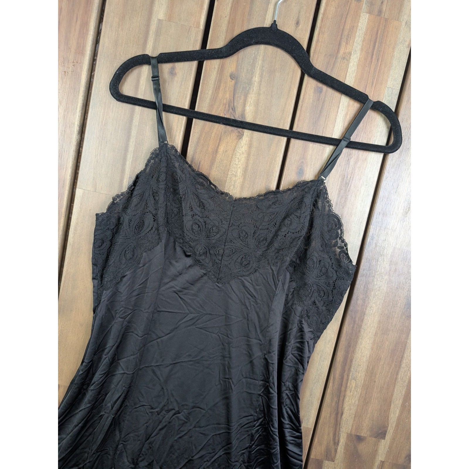VTG 1960'S WONDER MAID BLACK W/ LACE BODICE TRIM NYLON FULL SLIP USA SZ 38