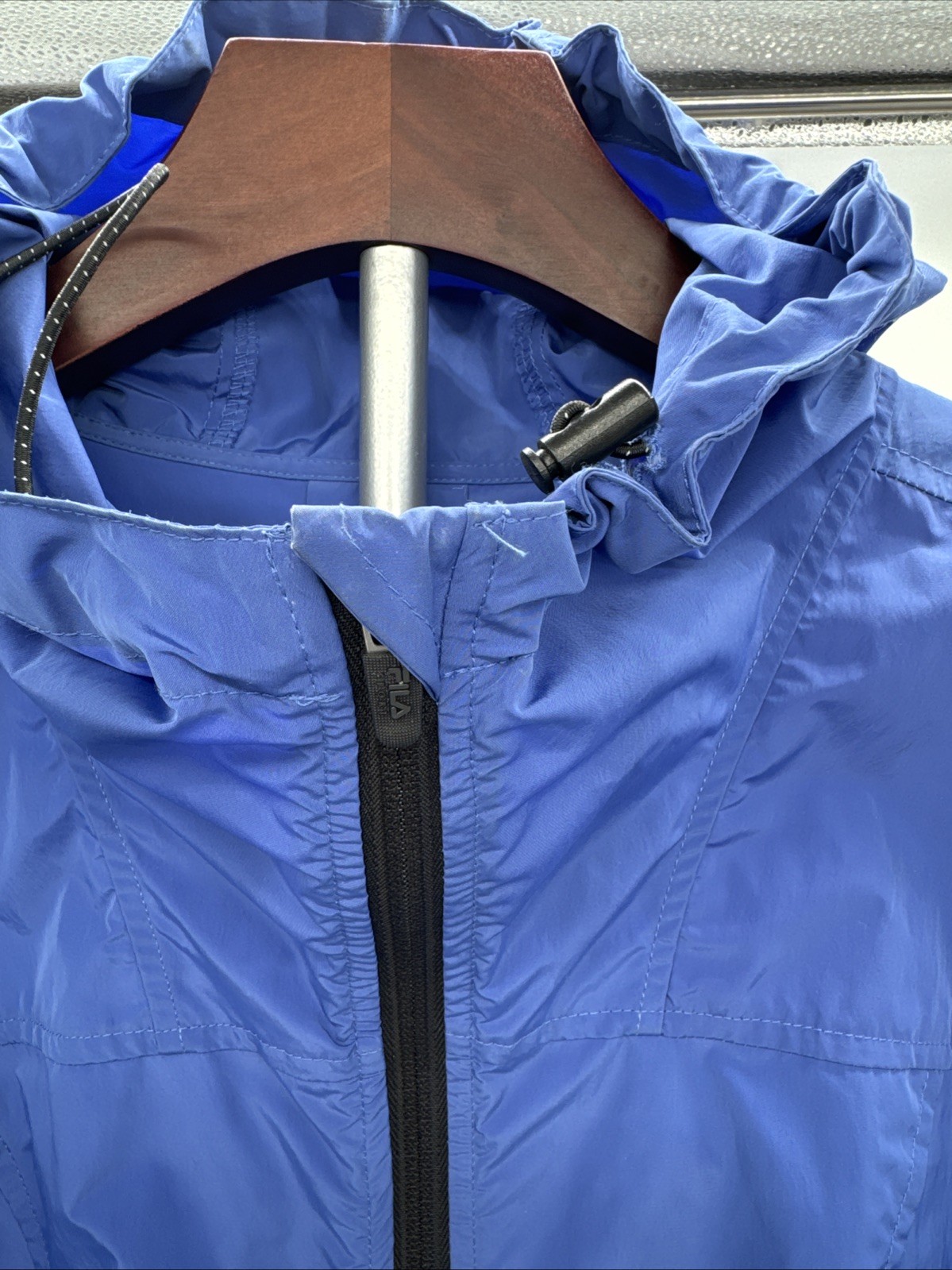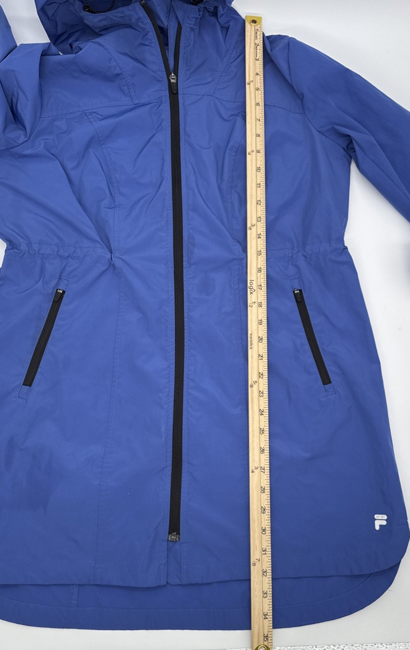как выглядит FILA SPORT Blue Zipped Long Sleeve Windbreaker w/Hood and Waist Cinch Women Sz L фото