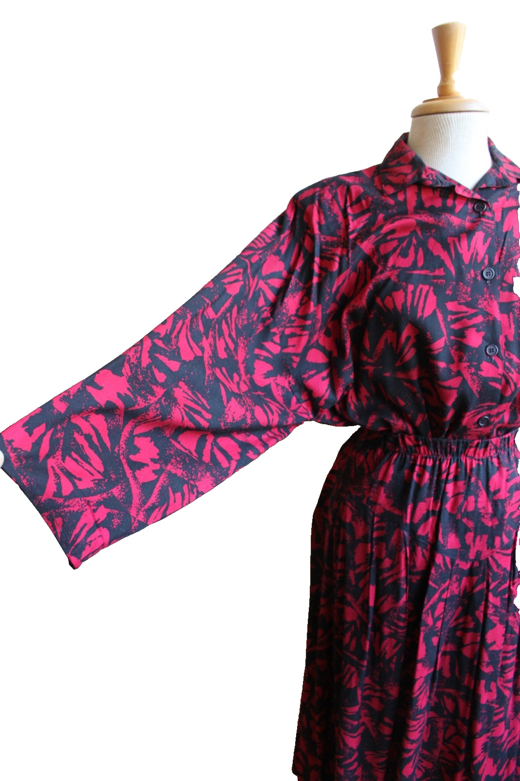 Vintage Black Red Outfit Shirt And Midi Skirt Set Womens 80s