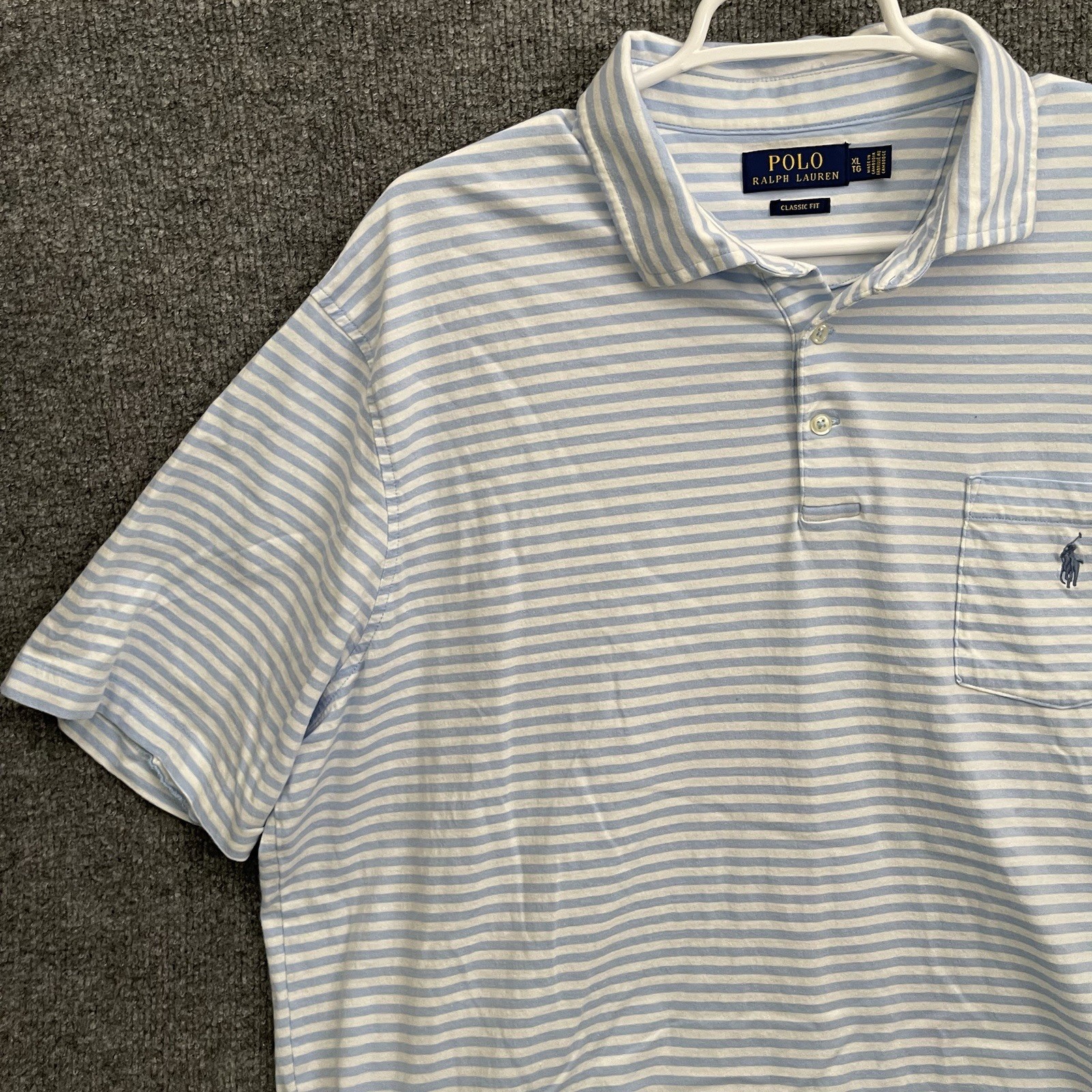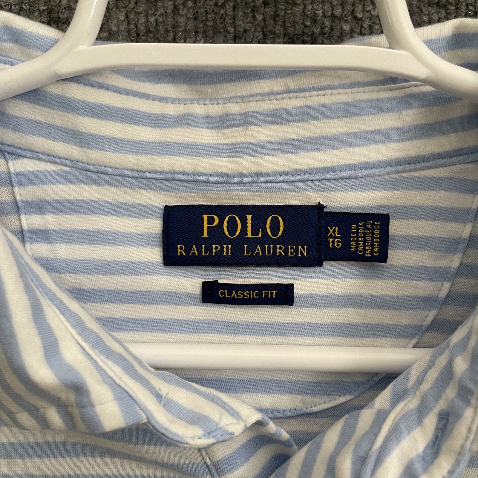 как выглядит Polo Ralph Lauren Mens Classic Fit Short Sleeve Button-Up Shirt XL Blue Striped фото