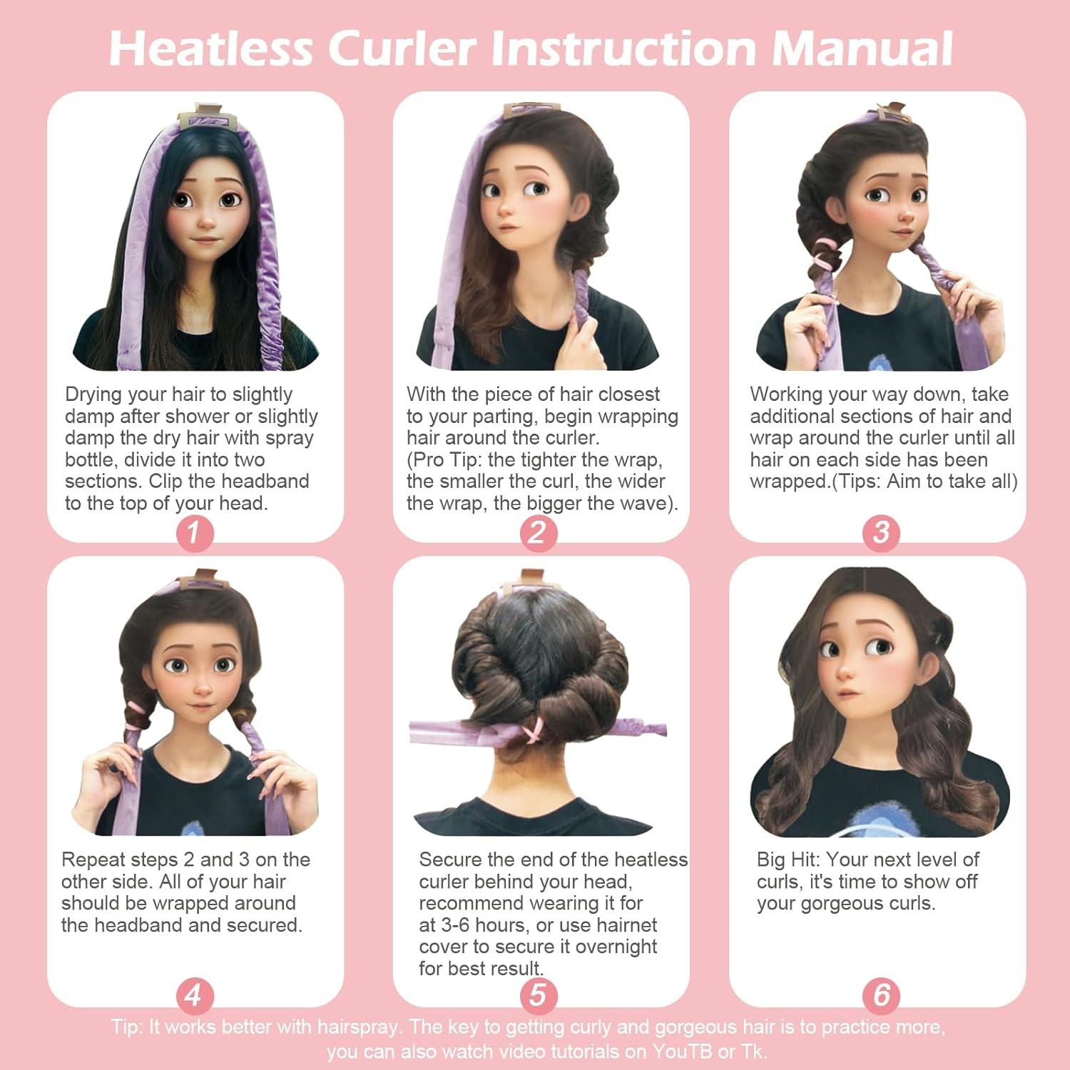 Heatless Curls Overnight Headband, 70'' No Heat Hair Curlers for Medium Long Hai