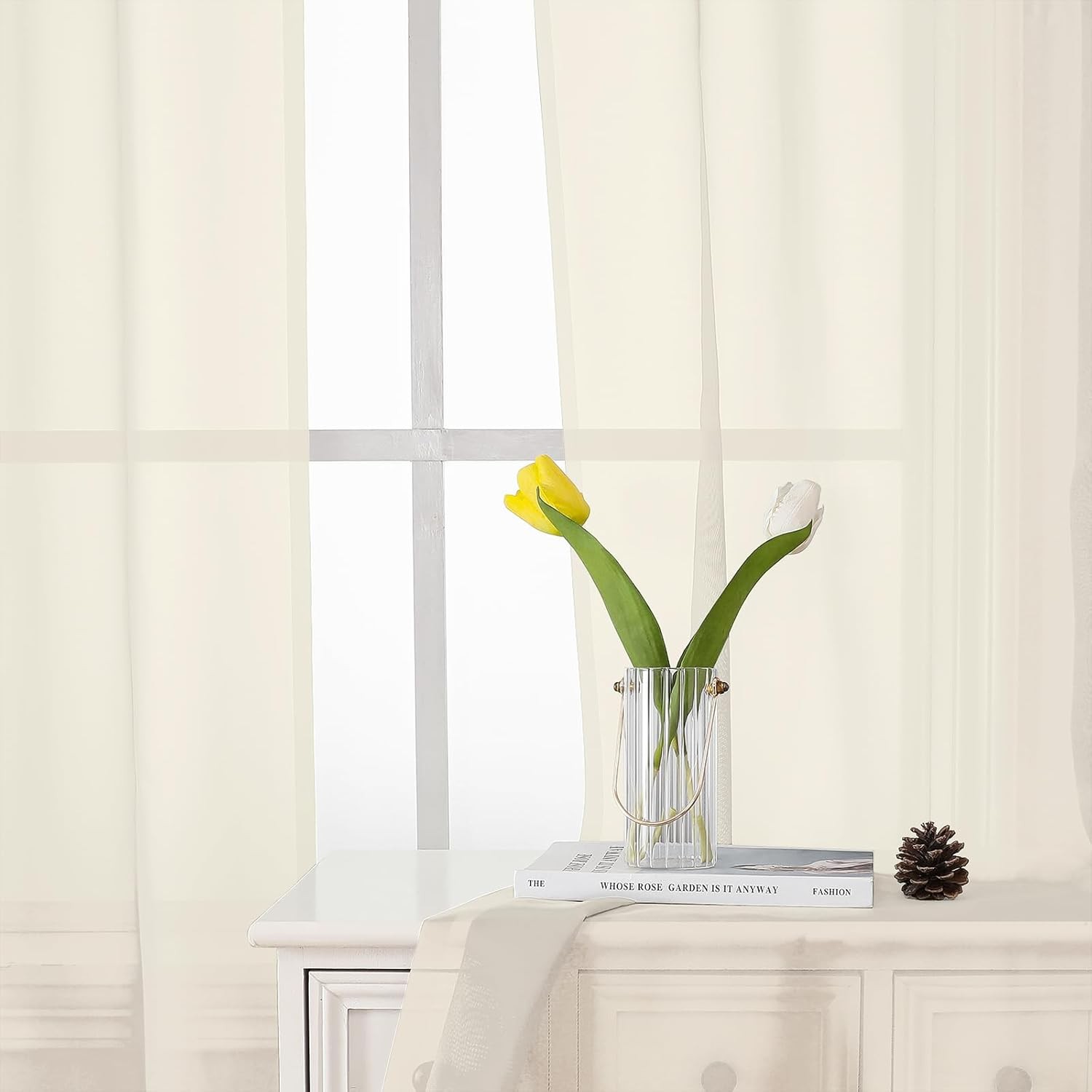 как выглядит Lecloud Cream Sheer Curtains 84 Inches Long 2 42"W x 84"L Pack of 2 , фото