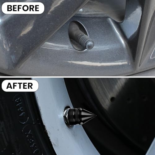 Car Tire Valve Caps, 8 Pack Spike Aluminium Alloy Auto Air Pressure Stem Black