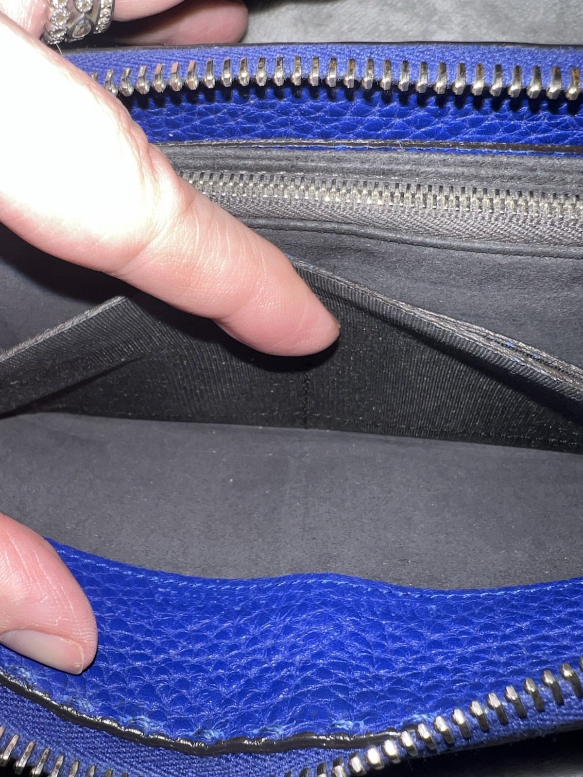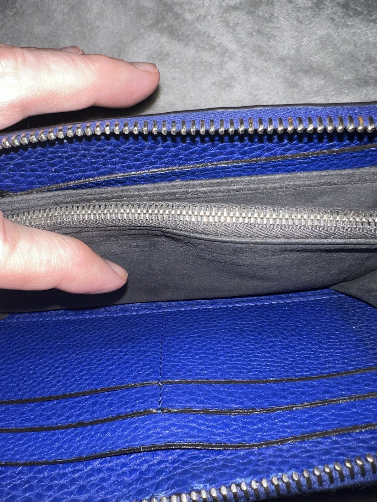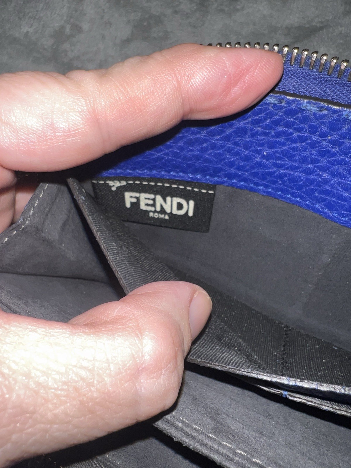 Fendi navy blue leather zip-around long wallet.