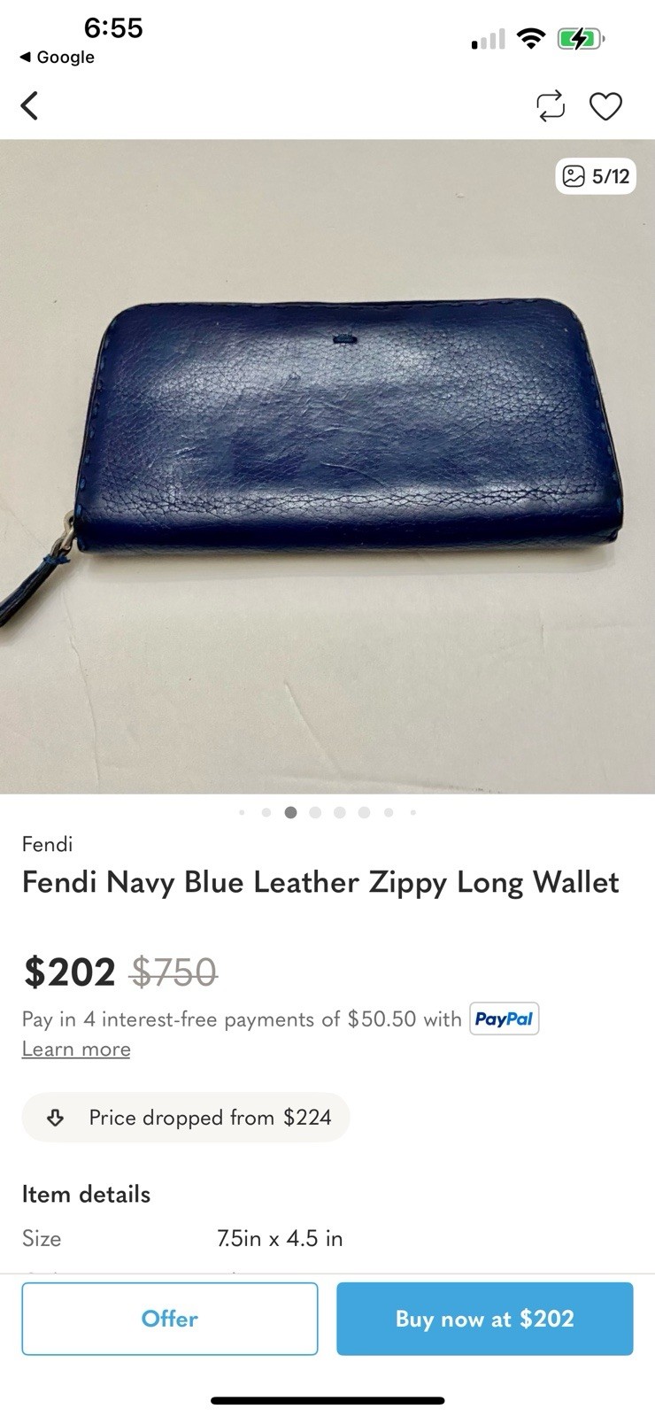 как выглядит Fendi navy blue leather zip-around long wallet. фото