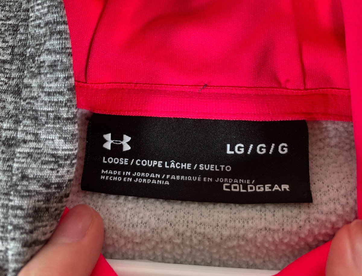 Under Armour Storm Womens ColdGear Grey Pink Pullover Hoodie Loose Fit Sz L