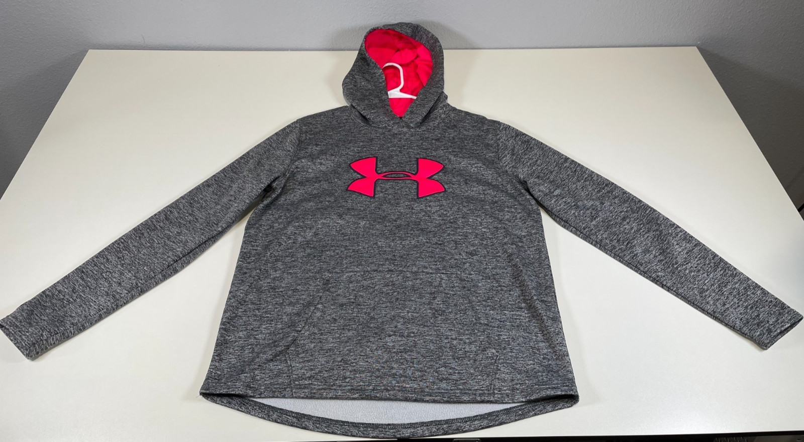 как выглядит Under Armour Storm Womens ColdGear Grey Pink Pullover Hoodie Loose Fit Sz L фото