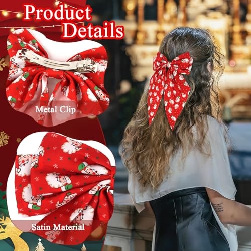 Christmas Hair Bows For Women Girls 3PCS Big Long Tail Ribbons Bowknot