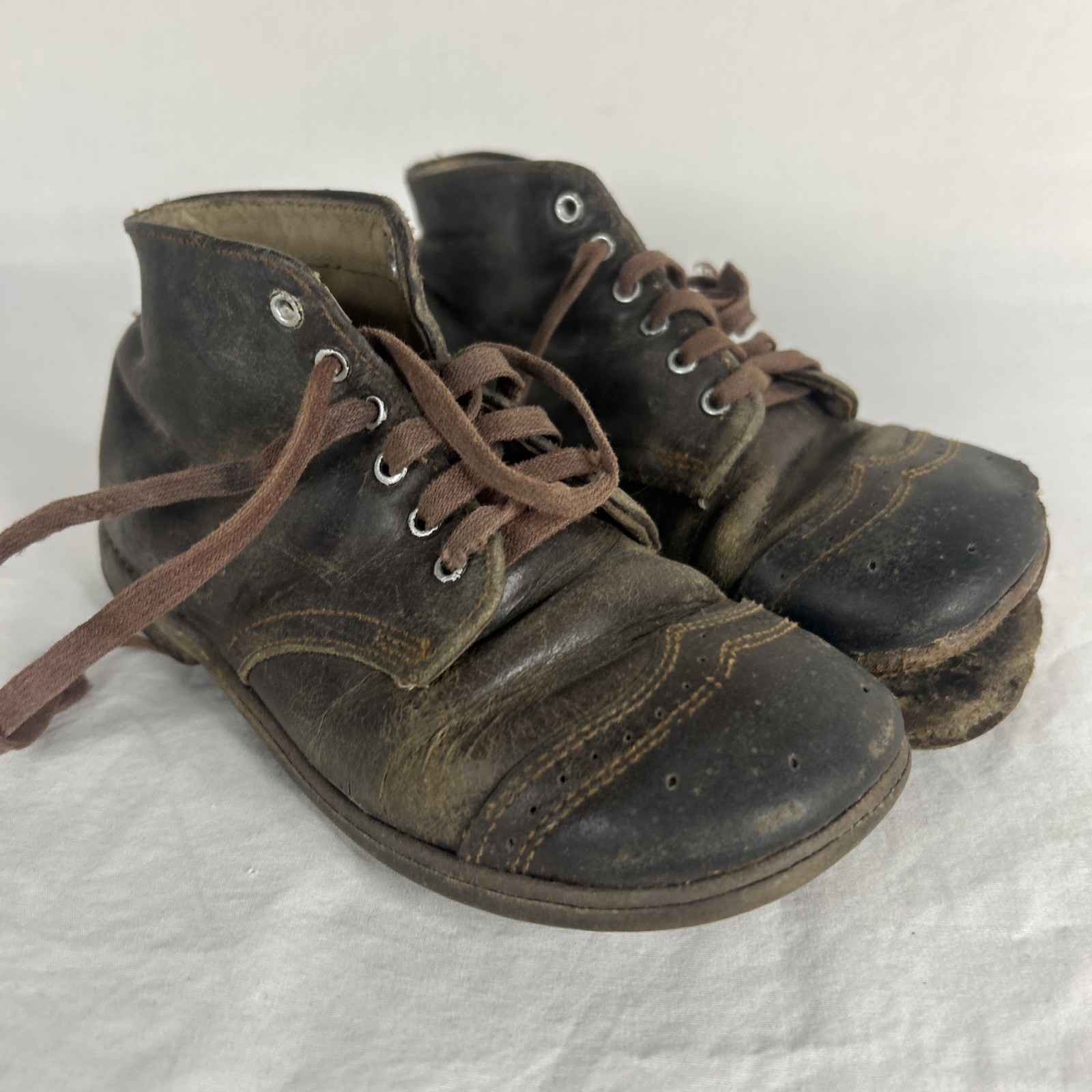 Rare Vintage Child s Leather Lace Up Shoes From The 1800s or Early 1900s
