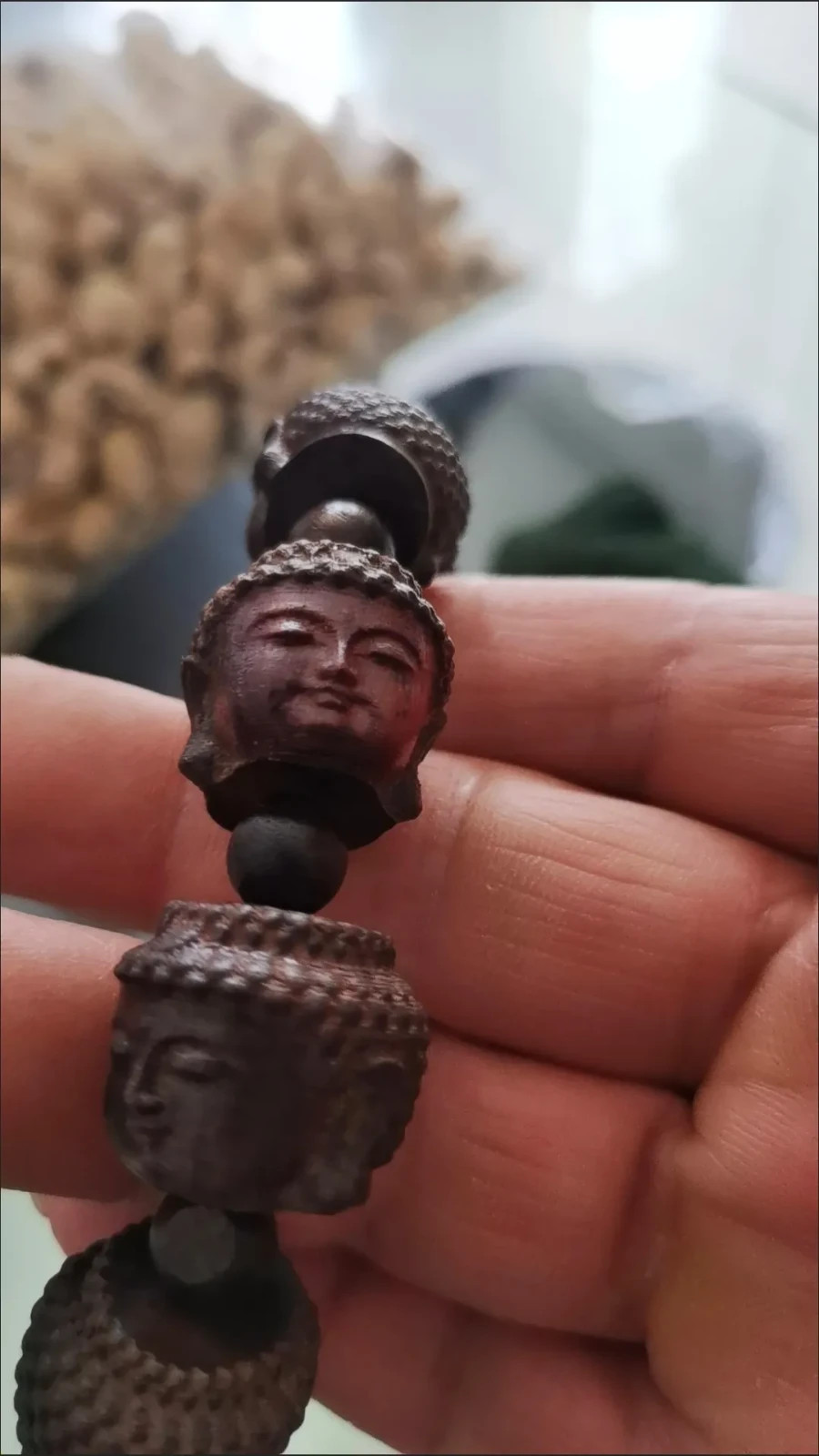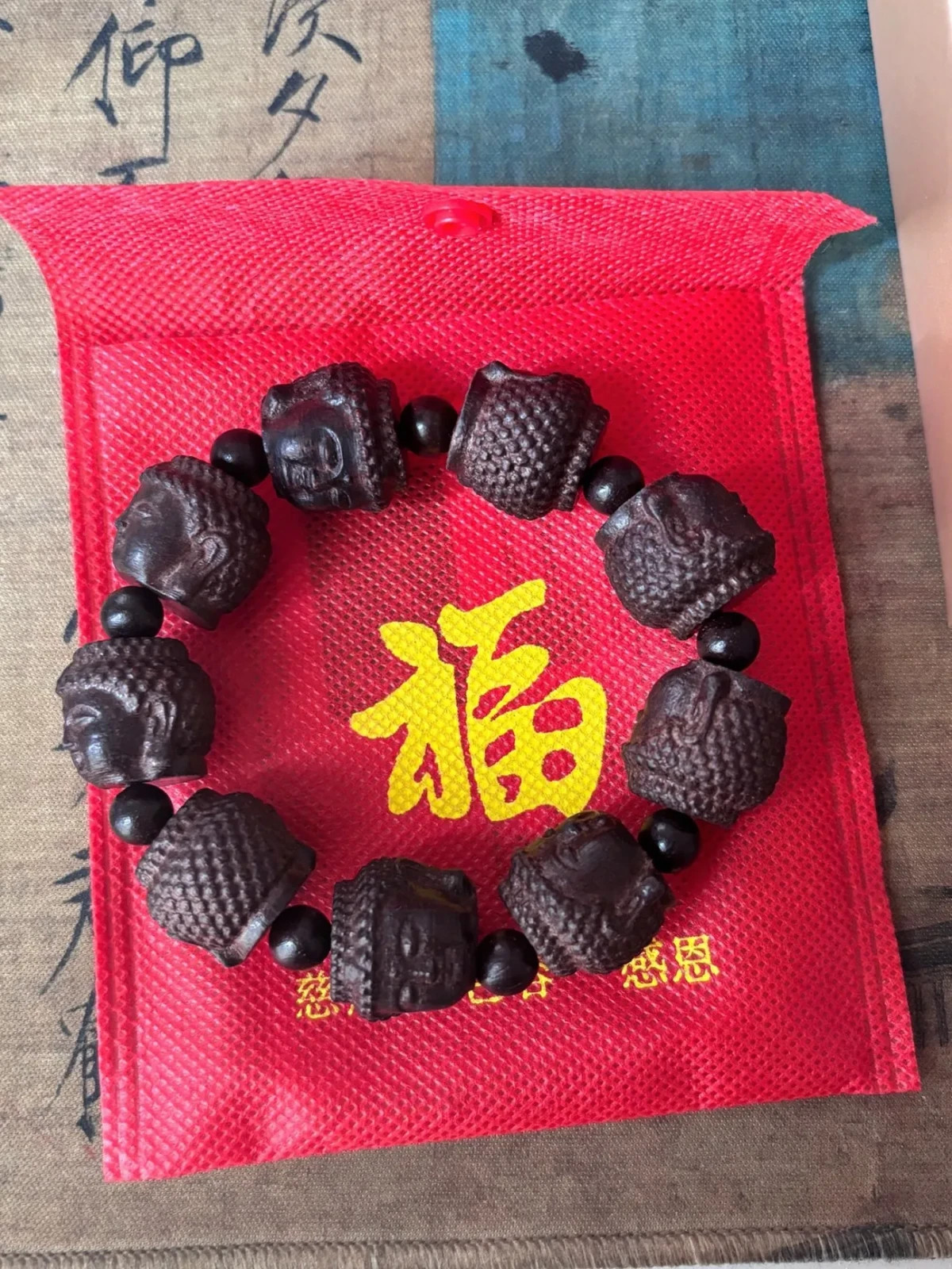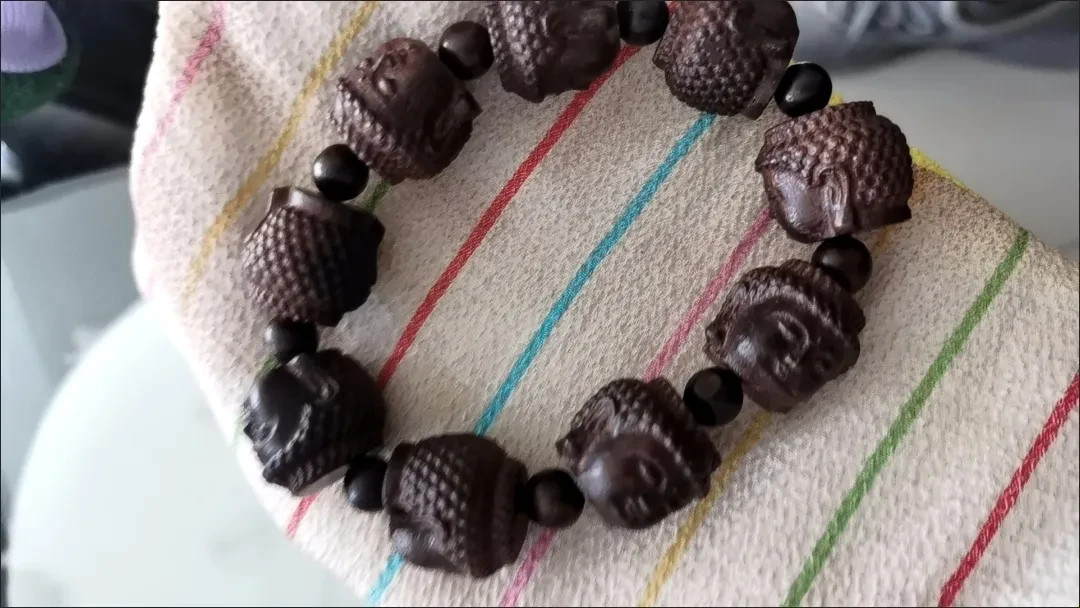 • 20mm Natural Wood Carving Men Gift Buddha Head Bracelet Blessing Amulet Jewelry