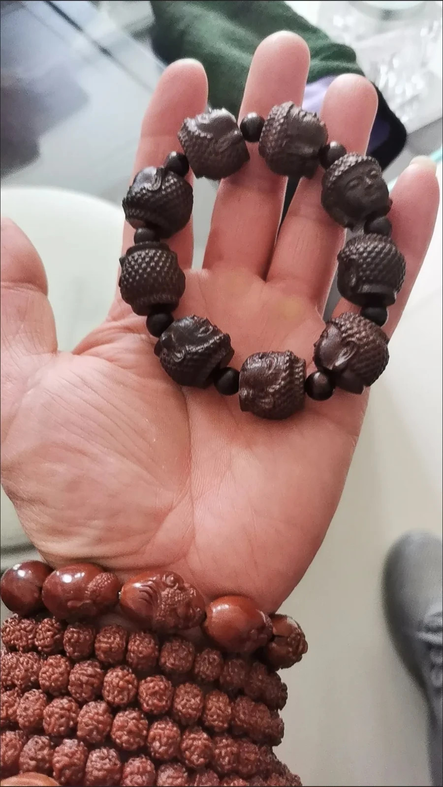 как выглядит 20mm Natural Wood Carving Men Gift Buddha Head Bracelet Blessing Amulet Jewelry фото