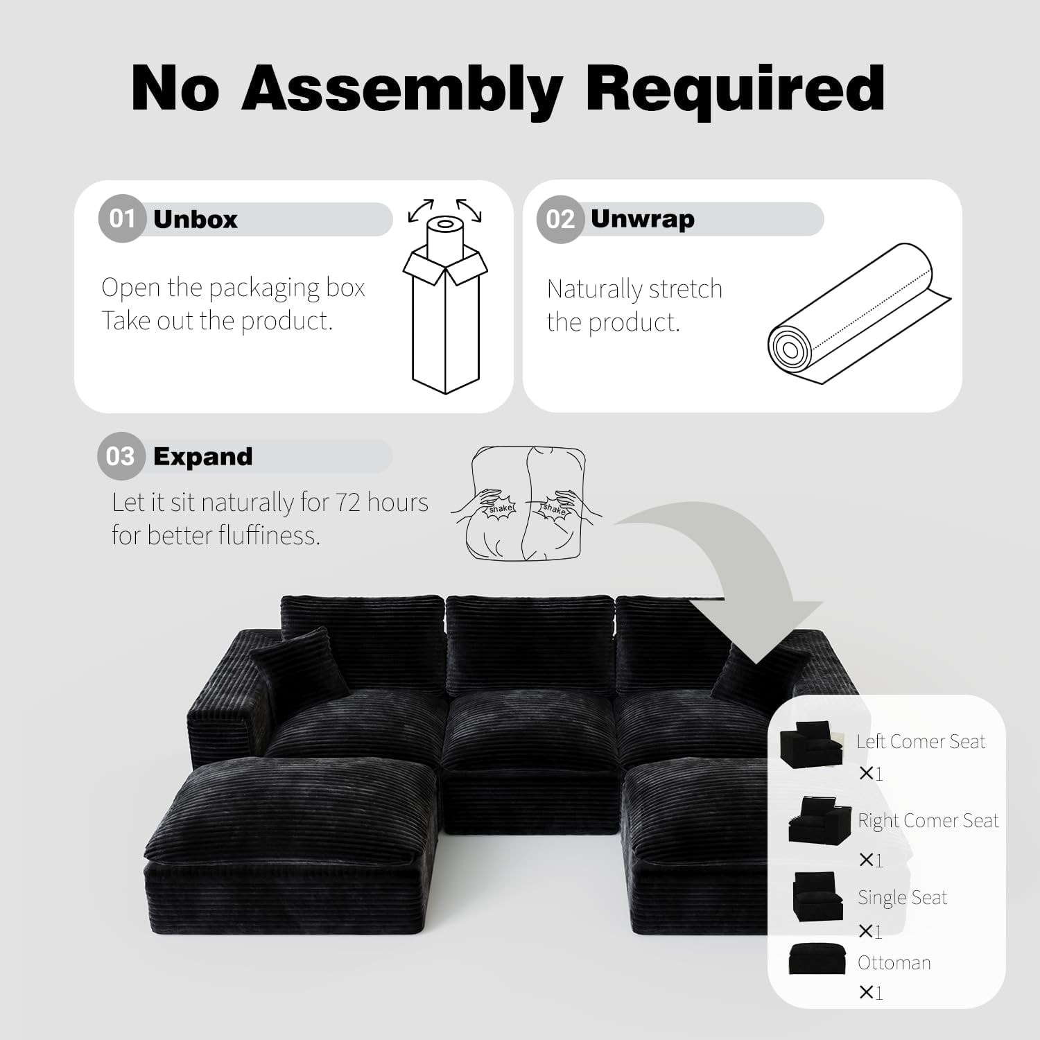 108 Plush Corduroy L Shaped Sectional Cloud Sofa Couch with Ottoman