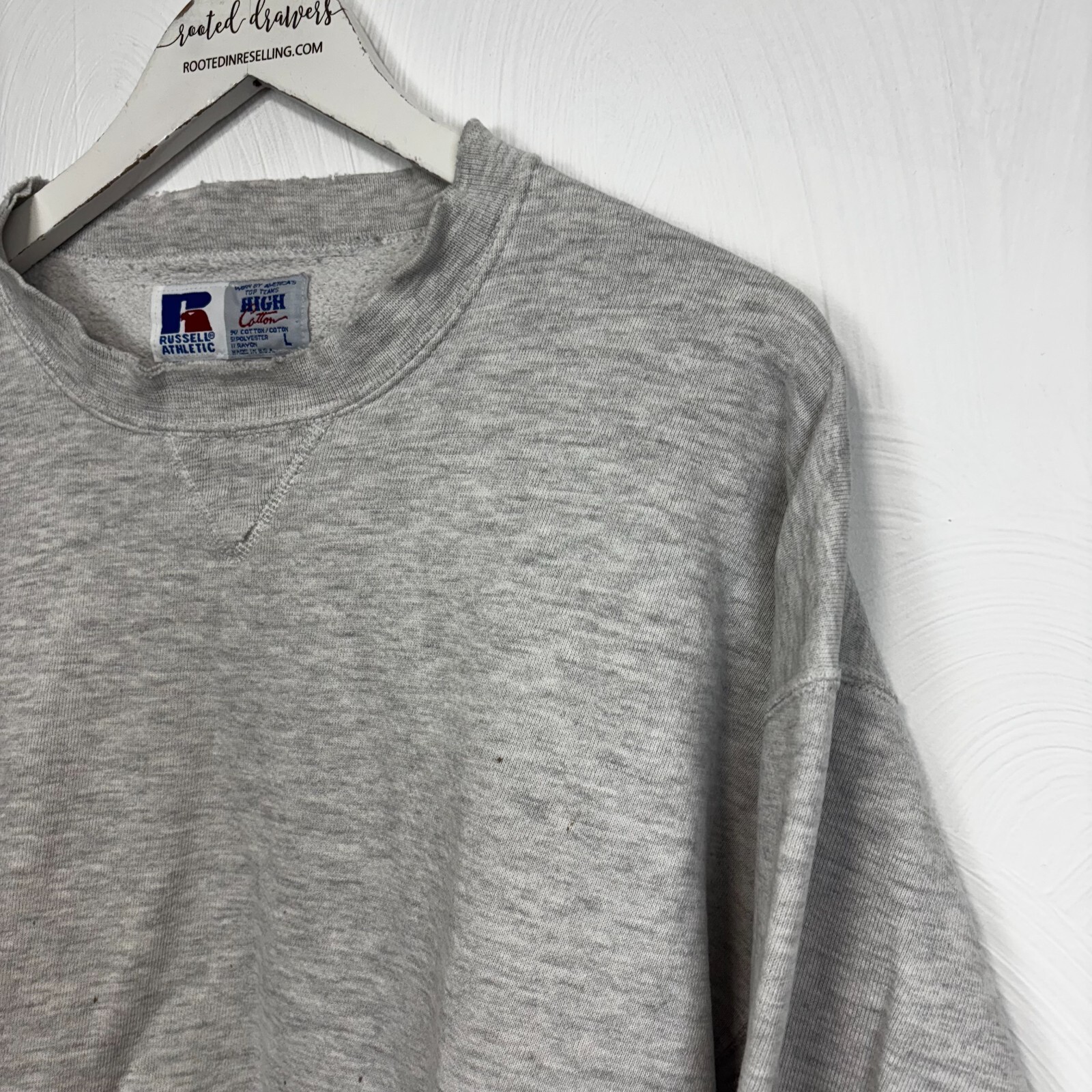 Vintage 90s Russell Athletic Sweatshirt Gray Solid Pullover Long Sleeve Cotton L