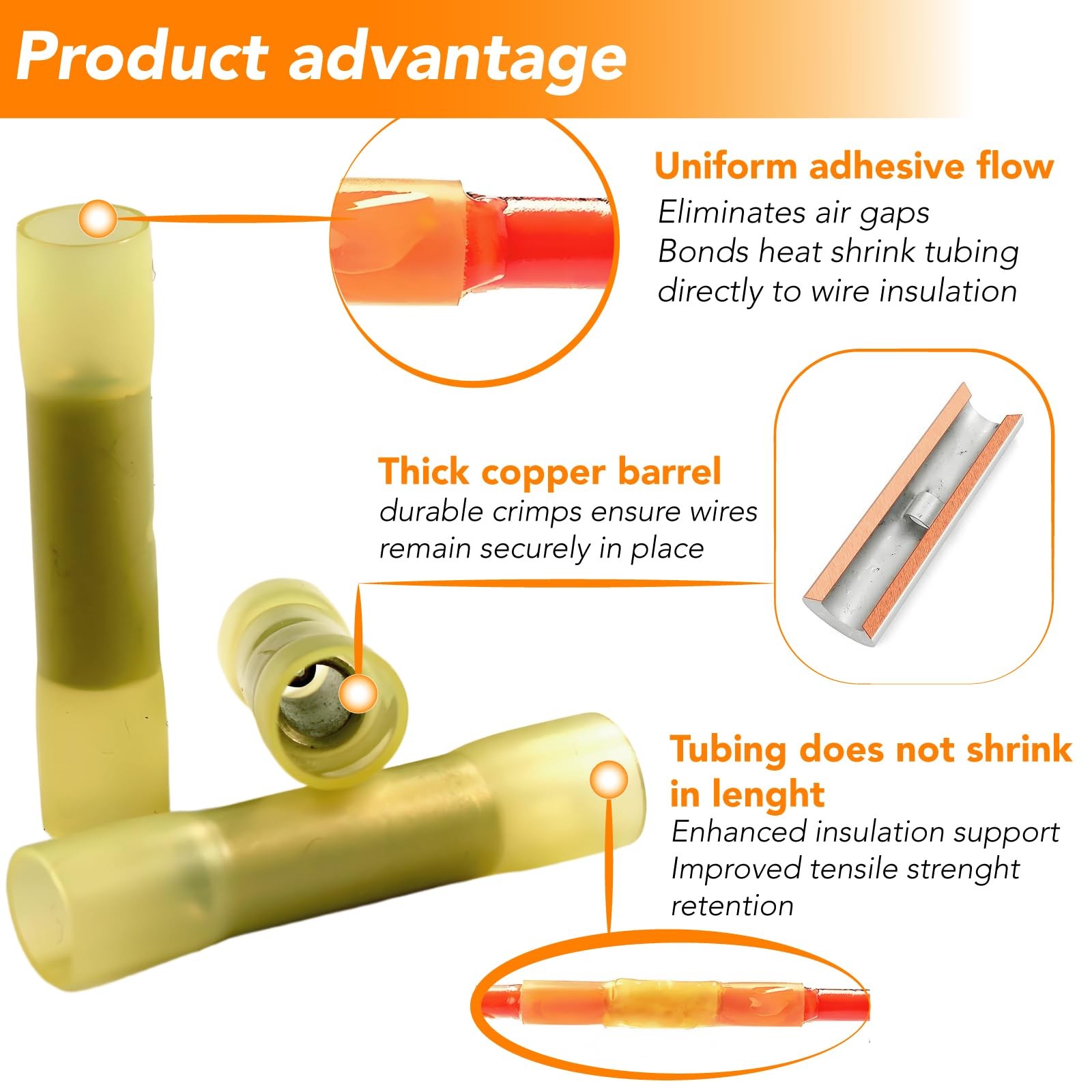 24pcs 8 AWG Heat Shrink Butt Connectors, Insulated Waterproof Crimp Terminal