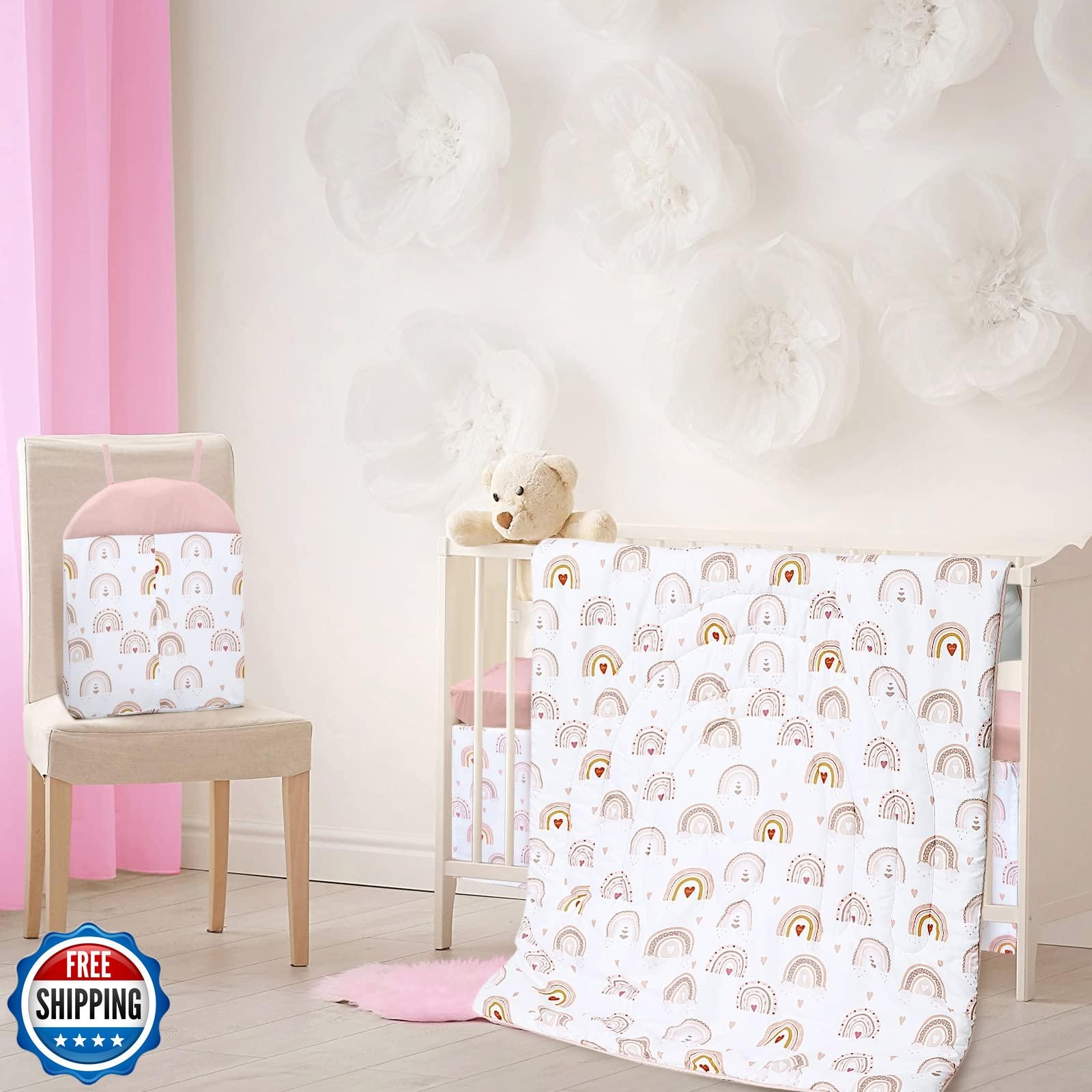 Rtteri 4 Pieces Baby Crib Bedding Set, Nursery Bedding Standard Size Soft Bab