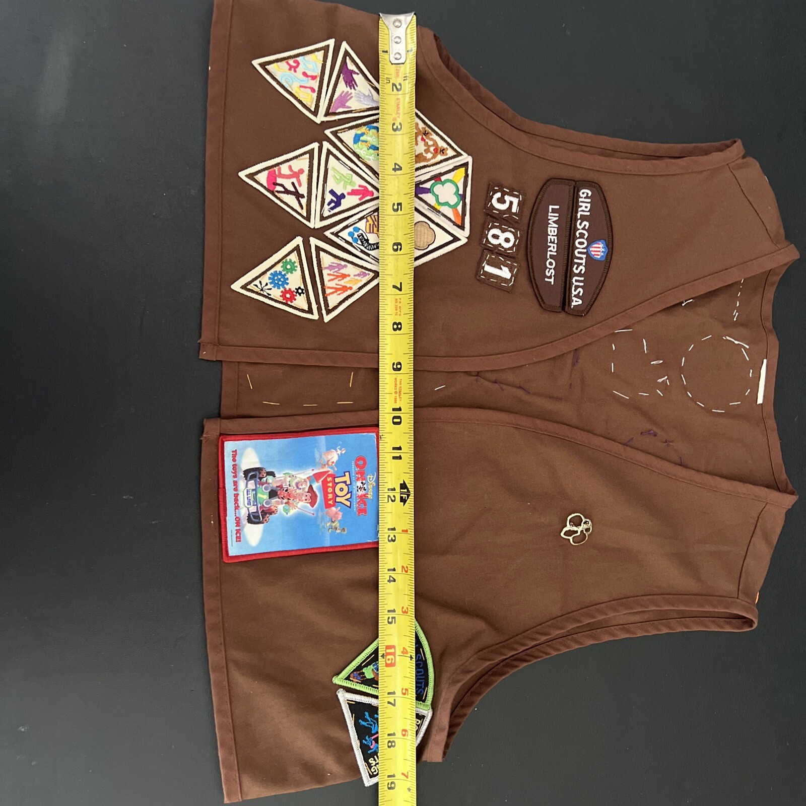 Vintage 1990-2001 Girl Scouts Brown Vest With Patches Pin. Size Look At Pictures