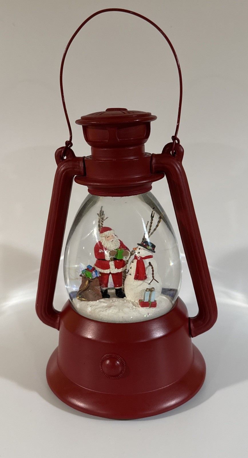 Christmas Snow Globe Lantern-Musical Red Lantern with Santa,Snowman Tree Scene