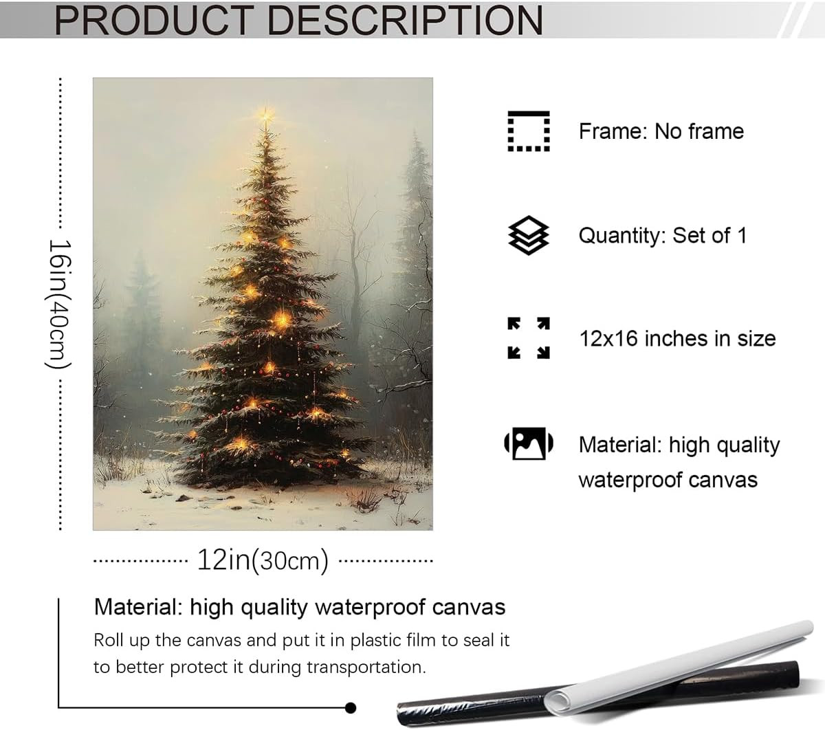 как выглядит Vintage Christmas Tree Canvas Art - Unframed 12x16 Winter Wall Decor фото