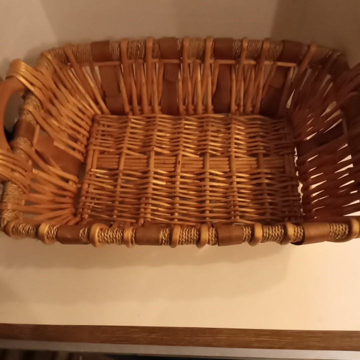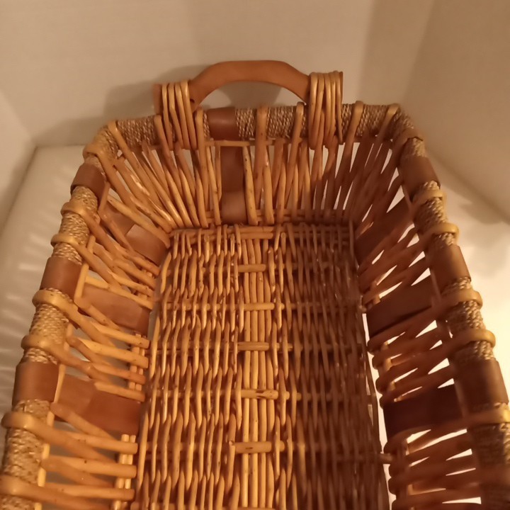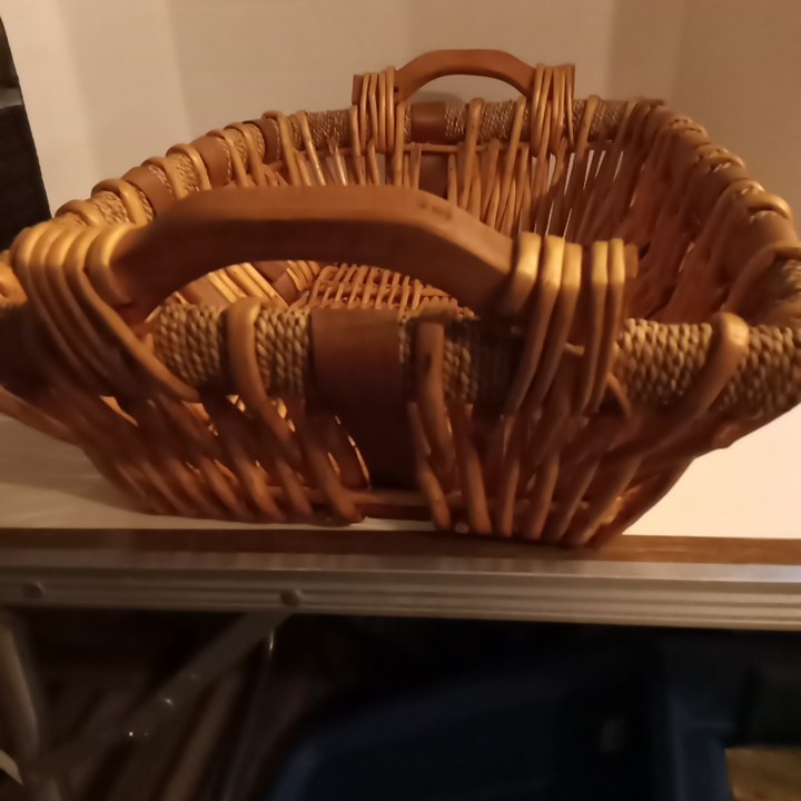 • Large Heavy Bamboo - And Wood Serving Basket, With Handles 22x15 Beautiful