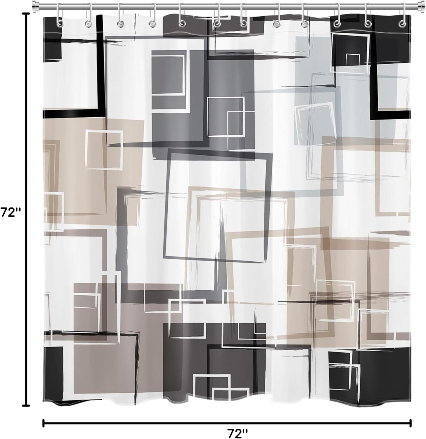 HVEST Modern Geometric Shower Curtain 72W x 72L Pack of 1 , Black and White