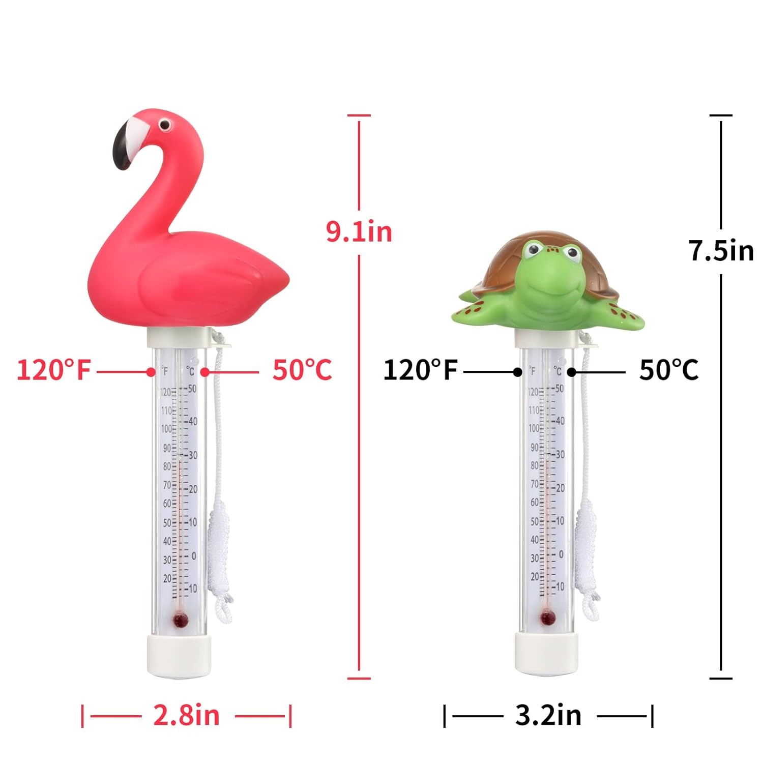 2 Packs Floating Pool Thermometer, Flamingo Turtle Design Large Size Easy...