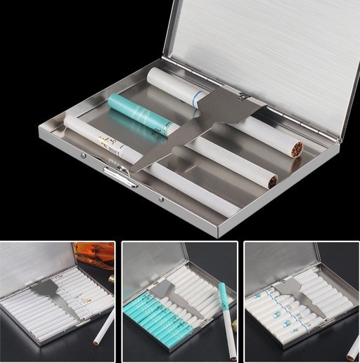 1PCS Cigarette Storage Cover Flip Hard Box Case Holder Metal Clip Black ZX-340