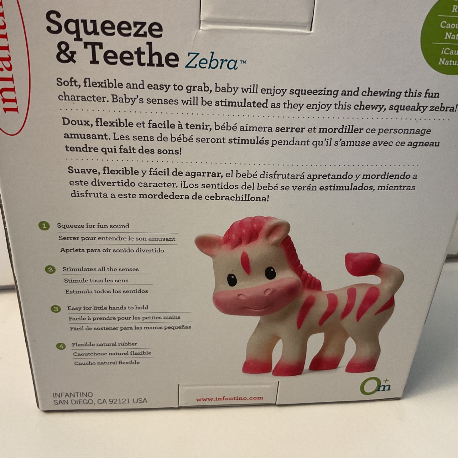Baby Infantino Squeeze Teethe Pink Zebra Soft Squeeky Flexible Baby Toy New