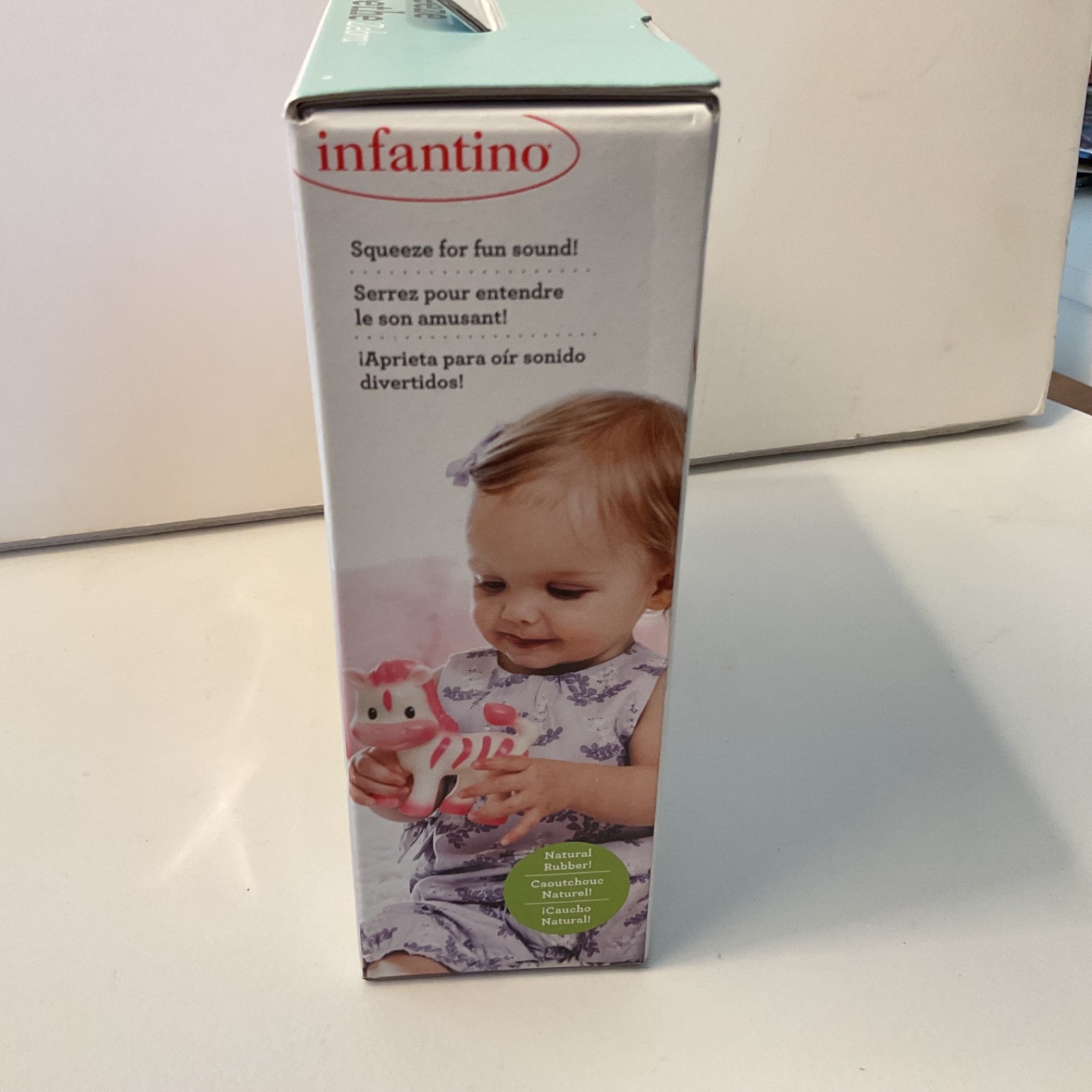 как выглядит Baby Infantino Squeeze Teethe Pink Zebra Soft Squeeky Flexible Baby Toy New фото