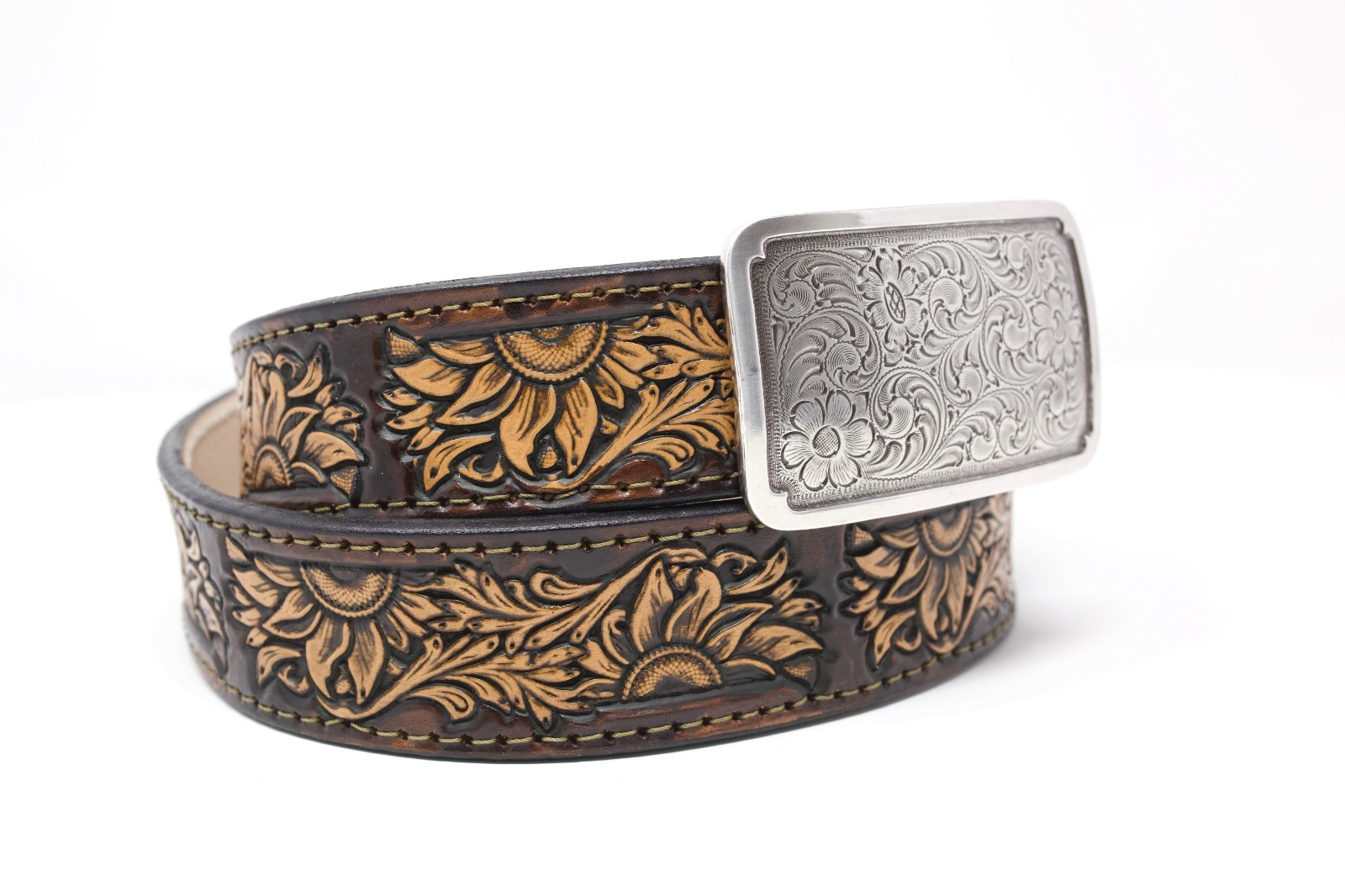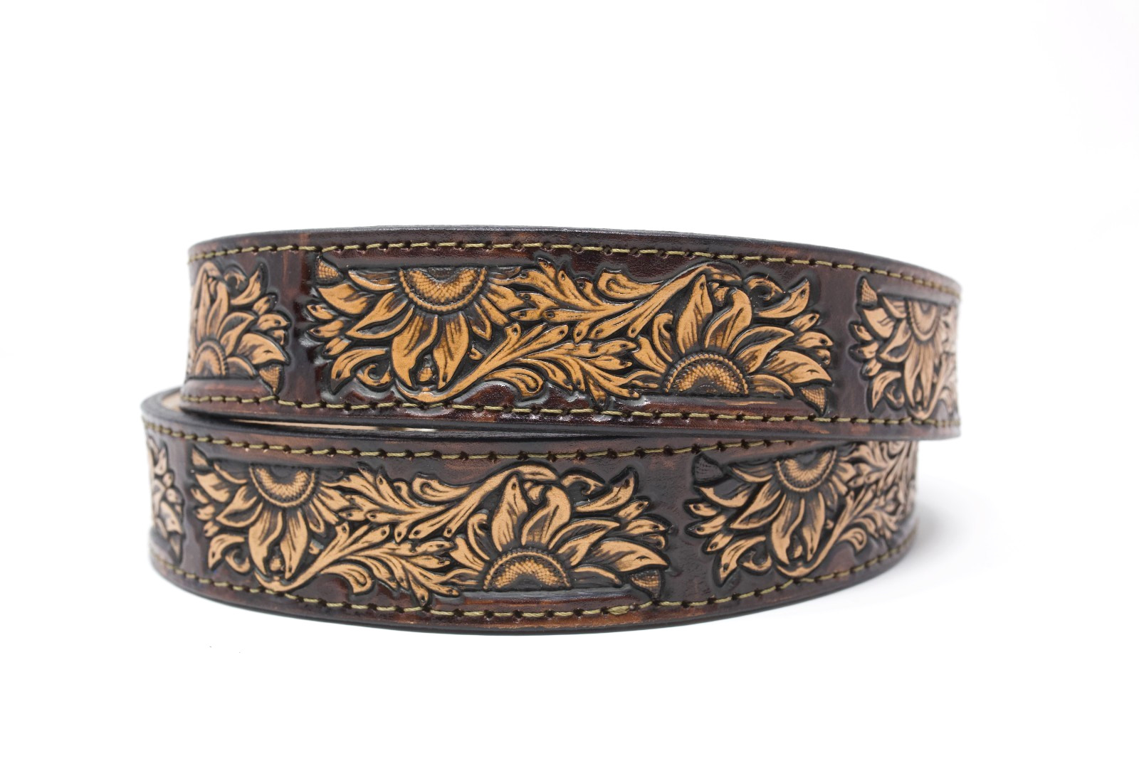 Western Sunflower Belt, 1.5 Hand Painted Leather Belt with Removable Buckle