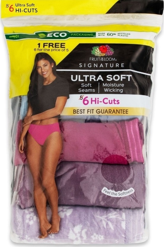 SZ 7 Fruit of the Loom SIGNATURE HI-CUTS 6PK 60 Cot/40 Poly in Misty Grape Gift
