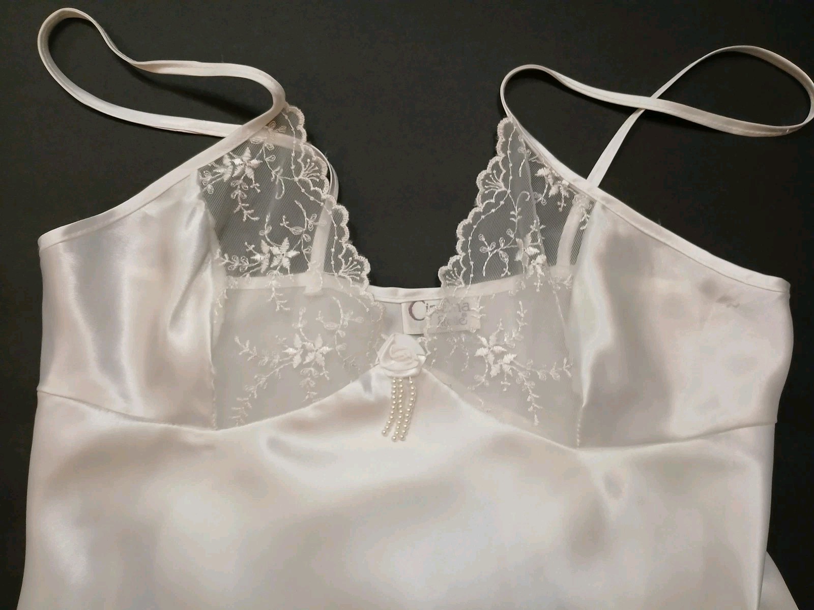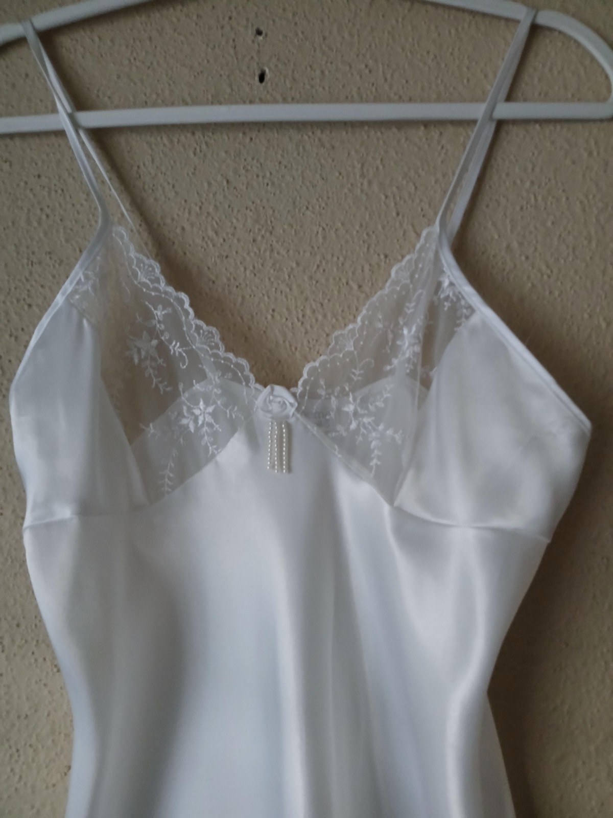 как выглядит Cinema Etoile Nightgown Womens Small White Satin Lace Chemise Slip Made USA фото